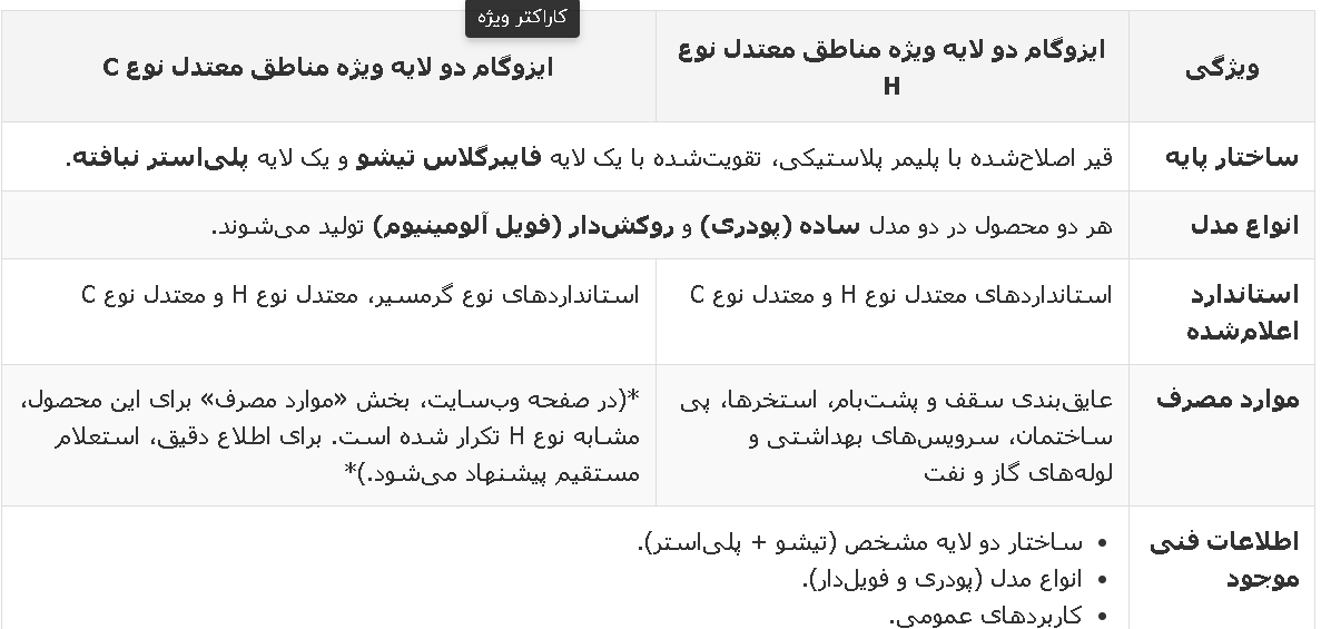 انواع محصول: در دو نوع اصلی فویلدار (عایق رطوبتی و حرارتی) و پودری (بدون فویل) عرضه میشود.