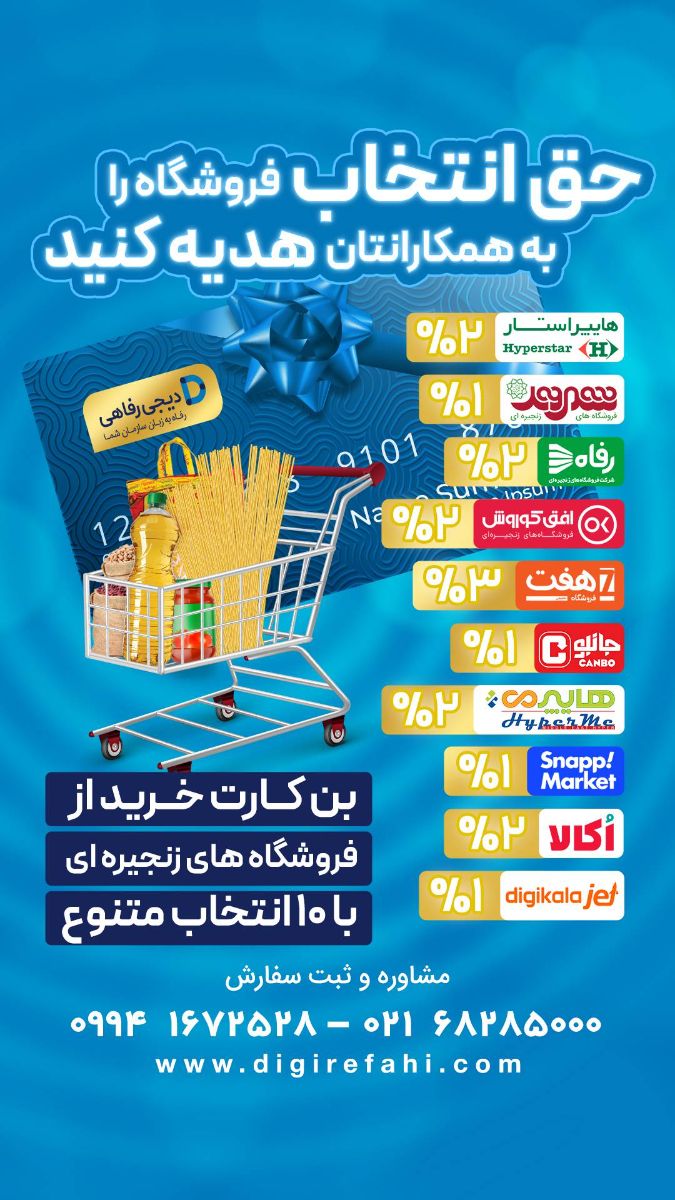 برای ثبت درخواست توزیع بن کارت فروشگاهی در سطح سازمان خود با ما تماس بگیرید