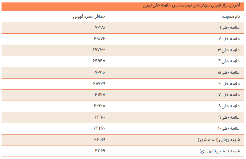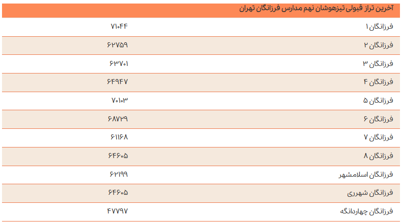 در تهران، برای قبولی در مدارس تیزهوشان، آگاهی از تراز آخرین فرد پذیرفتهشده اهمیت زیادی دارد. بررسیها نشان دادهاند که دانشآموزانی که در هر درس حداقل ۴۰ درصد کسب کردهاند، شانس بالایی برای پذیرش در مدارس برتر داشتهاند.