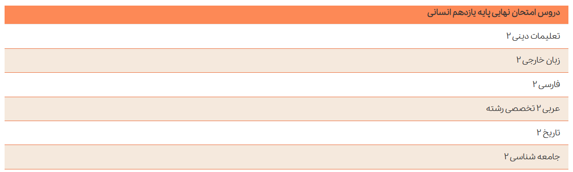تعداد دروس نهایی یازدهم انسانی: ۶ درس
