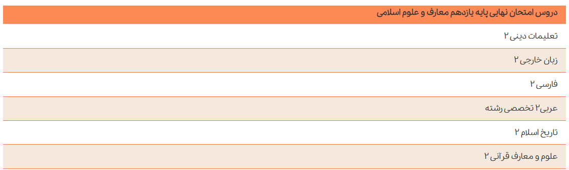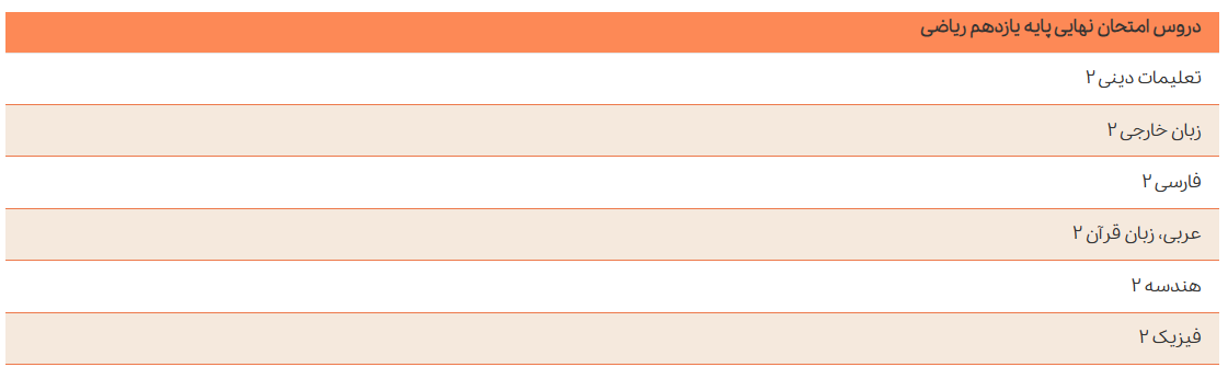 (دروس نگارش، کارآفرینی و آزمایشگاه علوم تجربی، جزو امتحانات نهایی نیستند.)