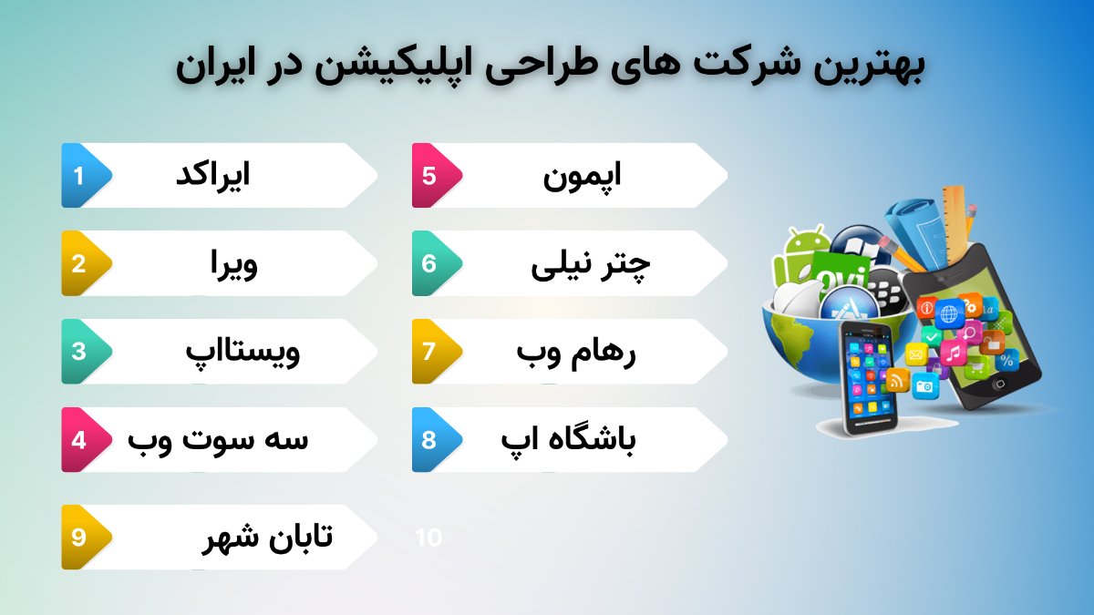 حال که با اپلیکیشن های موبایل و انواع آن آشنا شدید در ادامه قصد داریم بهترین و معتبرترین شرکت های طراحی اپلیکیشن موبایل را که تمامی معیارهای گفته شده را دارد، برای شما عنوان کنیم. امیدوارم مفید واقع شود.