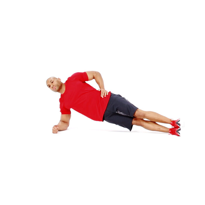 ۴. حرکت جانبی (Side Plank – modified): به پهلو بخوابید. آرنج تا ساعد خود را به زمین بچسبانید و خود را از زمین بلند کنید. کمر خود را به زمین بچسبانید و از زمین دور کنید. این حرکت برای باسن، ران و عضلات شما مفید است. همچین به از بین بردن پهلوها کمک میکند.