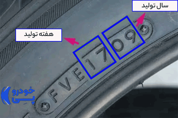 نکته بسیار مهم: تاریخ تولید لاستیکها معمولاً بهشکل یک کد چهار رقمی بر روی آنها درج میشود. برای مثال اگر عدد «۱۷۰۹» را روی بدنه لاستیک مشاهده کردید، یعنی این لاستیک در هفته ۱۷ام سال ۲۰۰۹ تولید شده است (دو رقم اول، هفته تولید و دو رقم دوم، سال تولید را نشان میدهد). قبل از خرید لاستیک ایرانی و خارجی حتماً به تاریخ تولید آن توجه کنید.