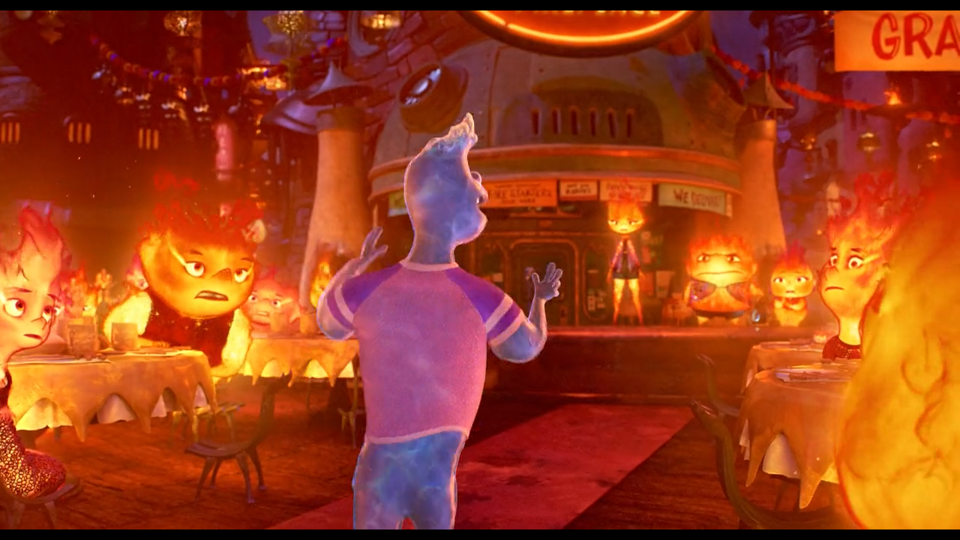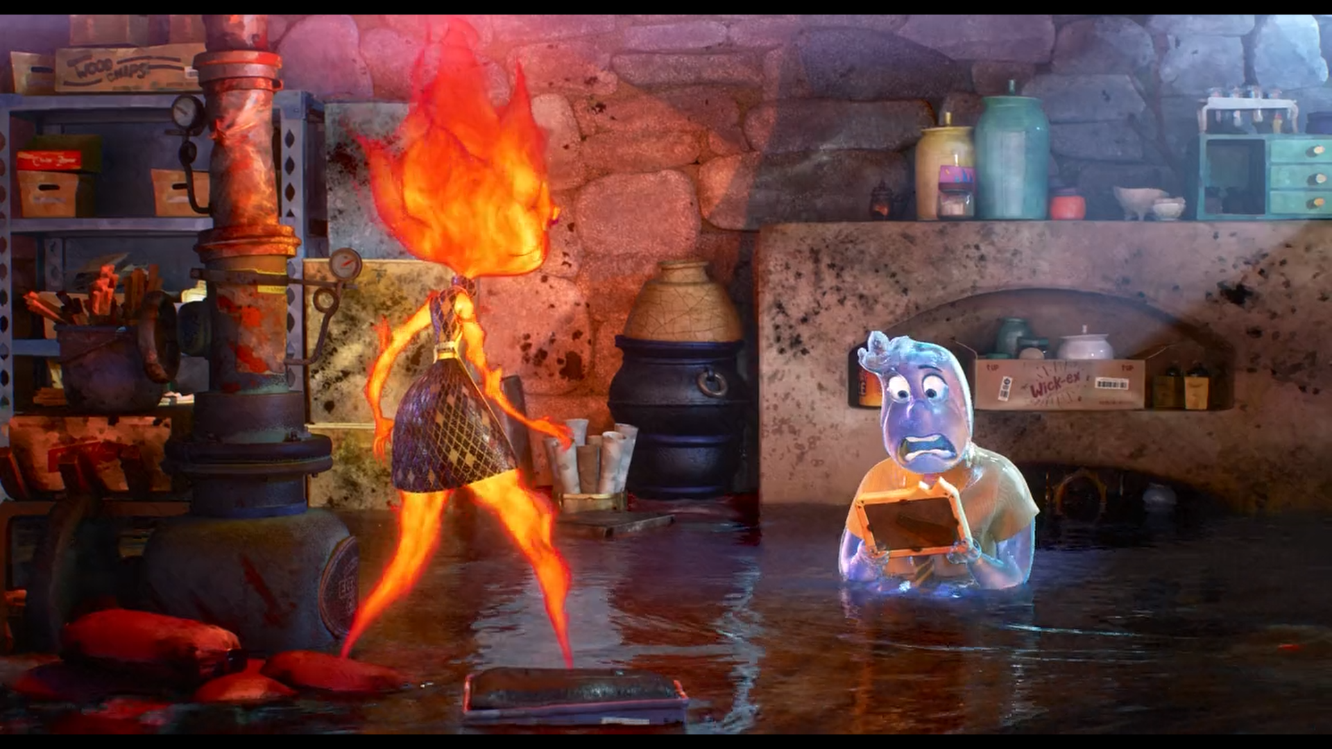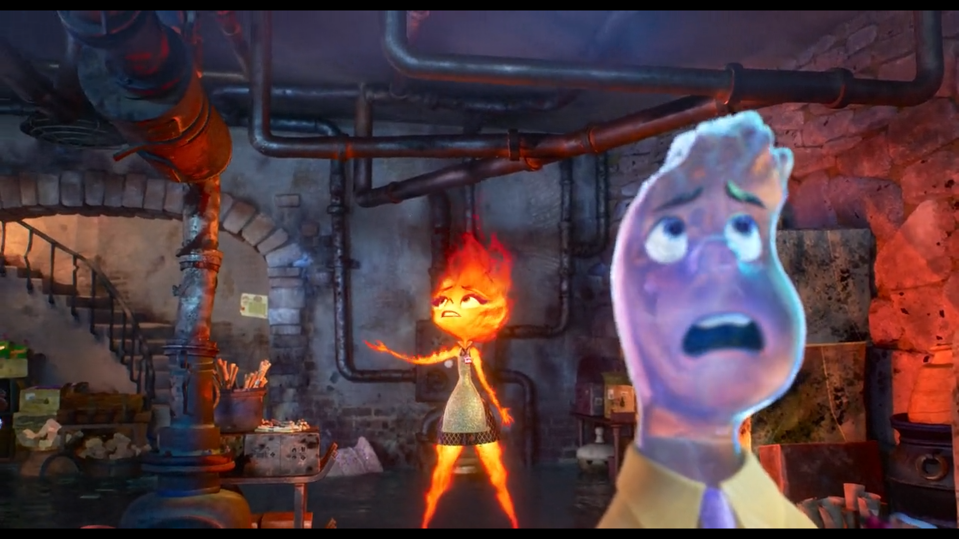 نشتی ناگهانی آب در مغازه، باعث ورود وید میشود؛ بازرس شهری از نژاد آبزاد. برخورد دو عنصر آتش و آب، نمادی از برخورد دو جهان متفاوت است. وید نمایندهی دنیاییست که امبر تاکنون فقط از دور دیده. حضور او آغاز ماجراست.