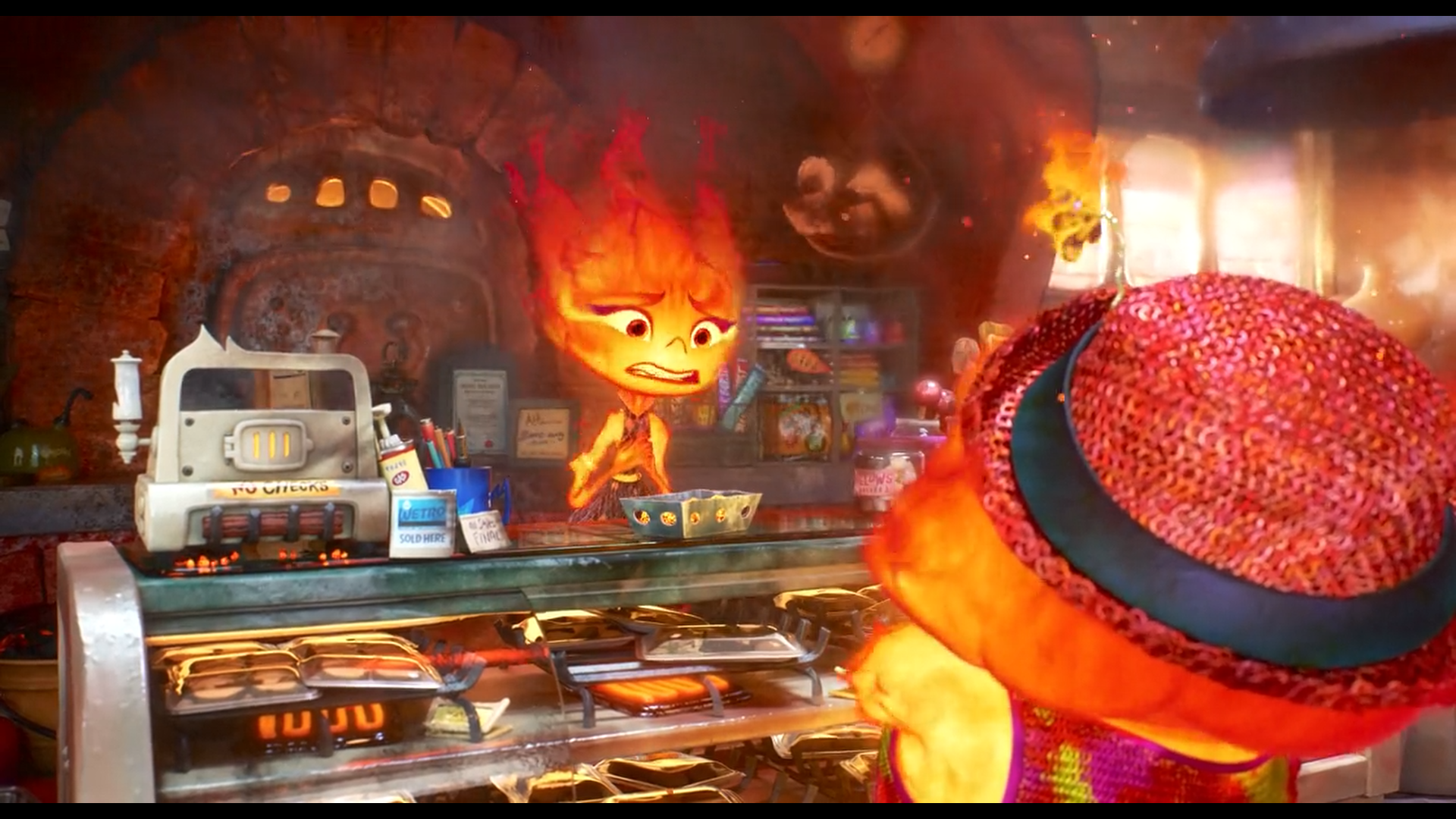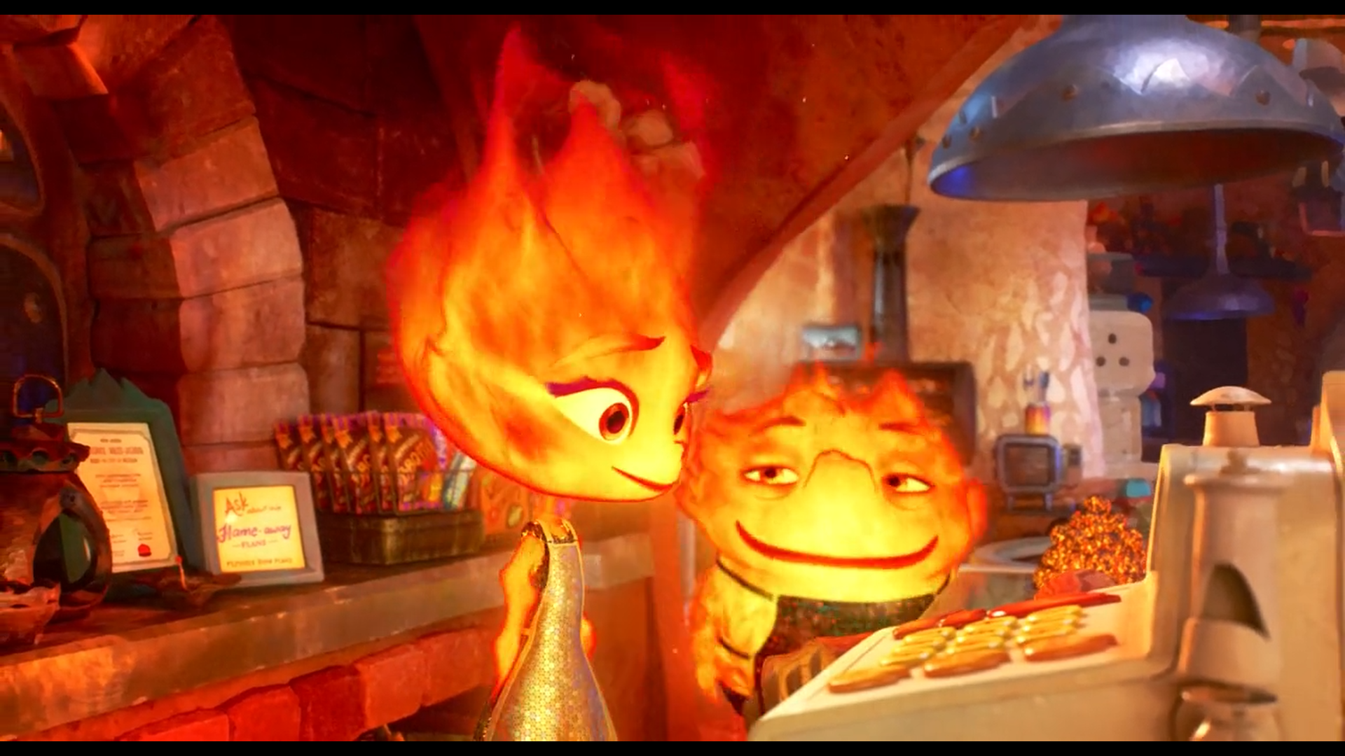 امبر در محلهای مخصوص آتشزادها در شهر المنت زندگی میکند. محلهای که با عناصر دیگر شهر مرز مشخصی دارد و تنوع نژادی زیادی در آن دیده نمیشود. او دختر یک خانواده مهاجر است که با سختکوشی توانستهاند مغازهی کوچکی به نام «شعلهی پدر» راه بیندازند؛ مغازهای که برای آنها نه فقط منبع درآمد، بلکه بخشی از هویت و غرور خانوادگی است. با وجود ظاهری آرام و منظم، درون امبر پر از دغدغه و سوال است. زندگی در این محله بسته، در حالی که جهان بزرگی آنسوی مرزها در جریان است، به شکل ناخودآگاه او را به فکر فرو میبرد. این وضعیت هرچند آشنا و امن است، اما محدودکننده و خفهکننده هم هست.