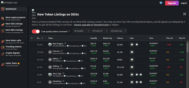 ListingSpy یه پلتفرم هوشمنده که لیست توکنهای جدید رو در صرافیهای متمرکز و غیرمتمرکز جمعآوری میکنه. این یعنی شما به جای اینکه مجبور باشید دهها صرافی مختلف رو جدا جدا بررسی کنید، میتونید همه اطلاعات مهم رو در یک صفحه ببینید.