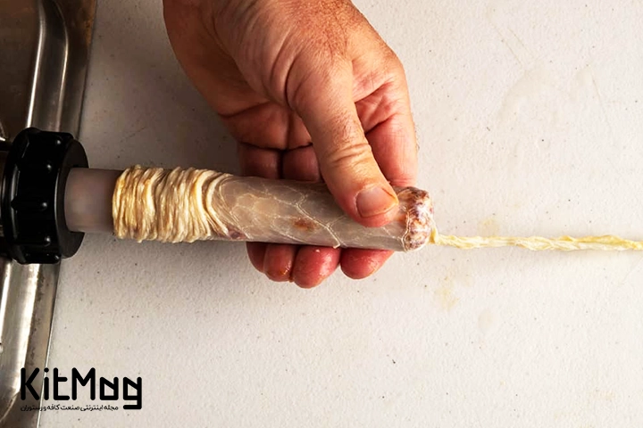 پس از پر شدن روکش، انتهای آن را با یک گره محکم، ببندید. این کار از نشت مواد جلوگیری میکند .