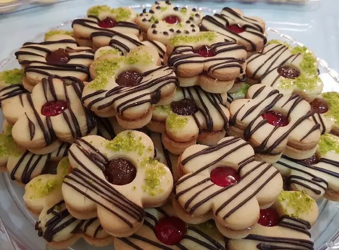 پخت در فر: فر را از قبل با دمای ۱۷۵ درجه گرم کنید و شیرینیها را ۱۰ تا ۱۵ دقیقه بپزید.