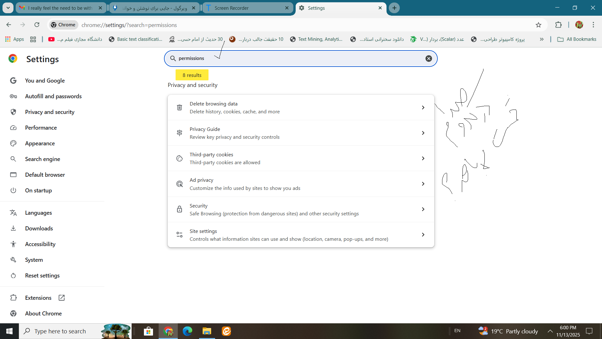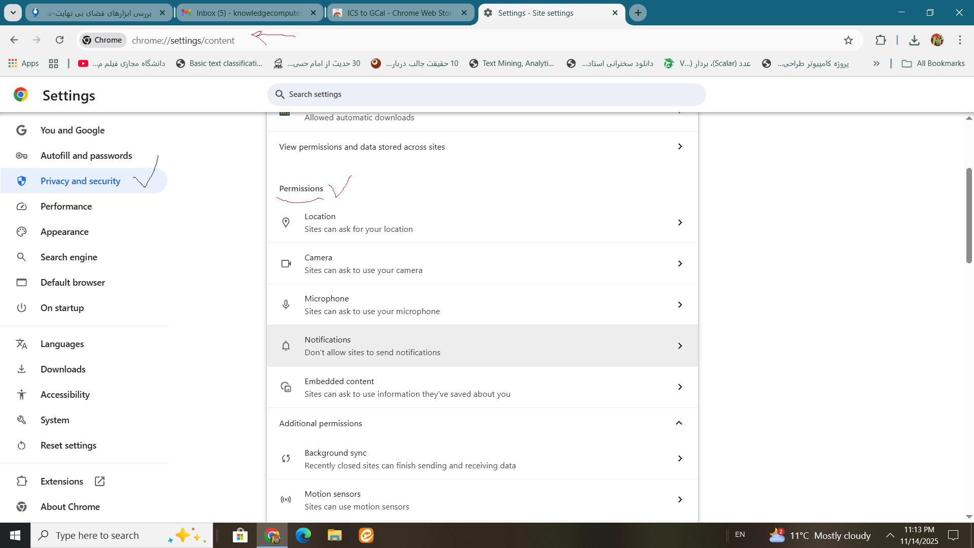 قسمت بررسی یا اجازه ی دسترسی ها هم پیداشد این قسمت بوده است