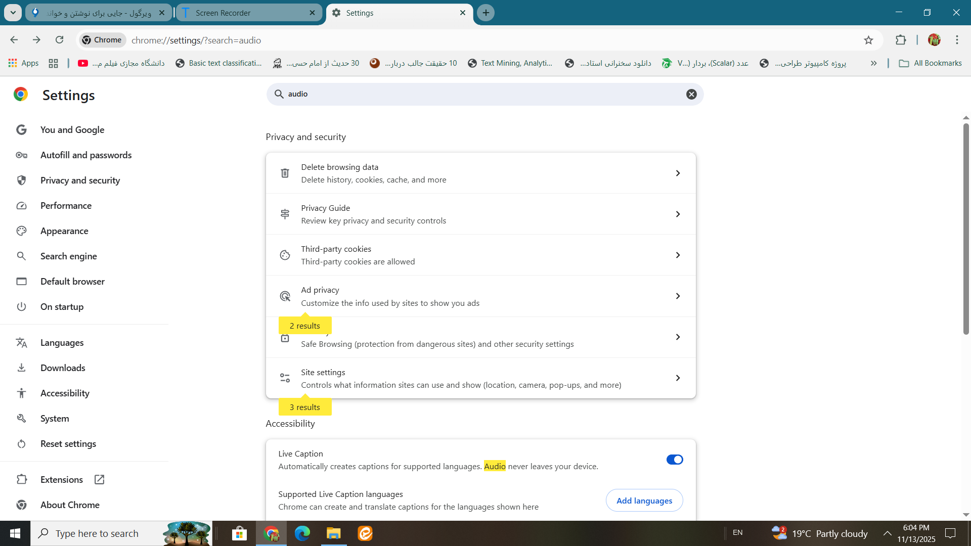 خوب من روی کلید ضبط کلید کردم وقسمتی را برای من ضبط کرد درون مرورگرم