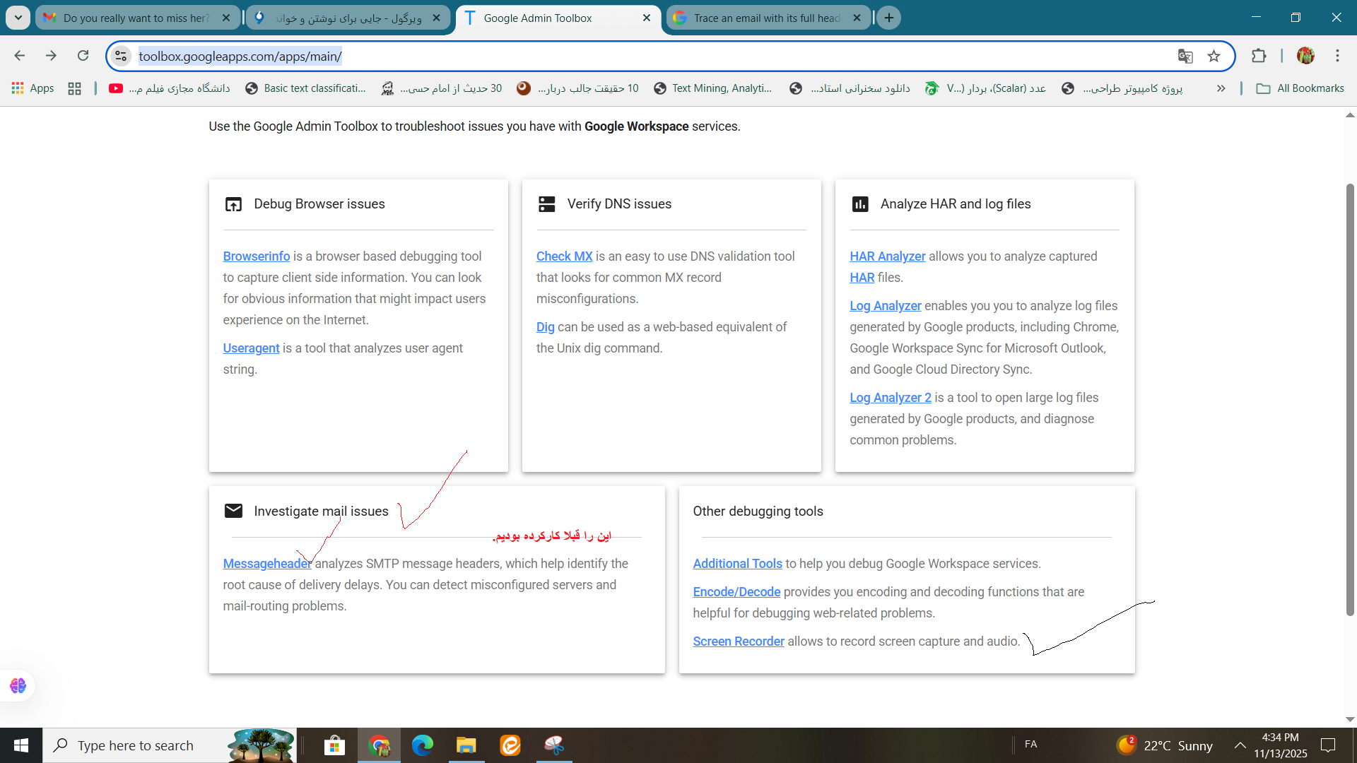 هدر پیام جعبه ابزار مدیریت گوگل را باز کنید .