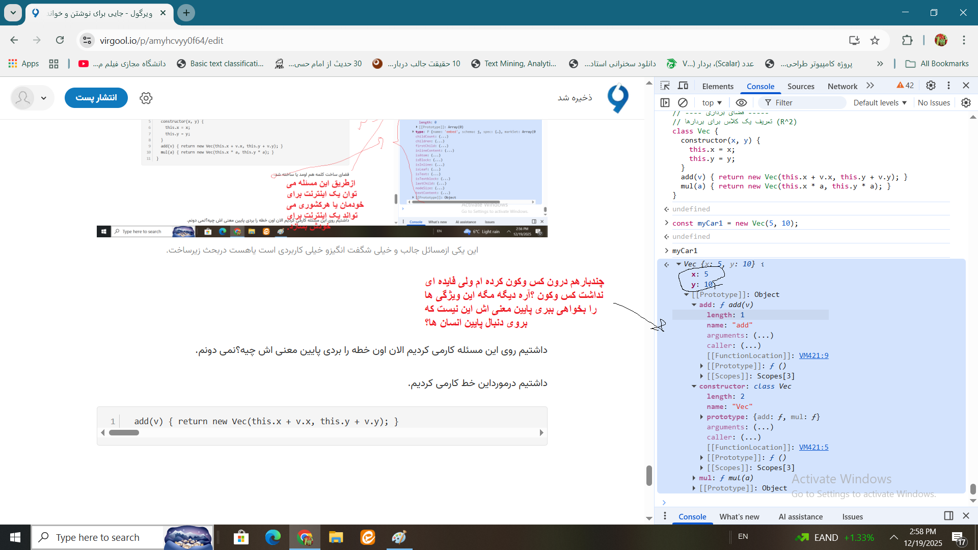 درسته درون کلماتش احساس است یاهست ولی مسئله این نیست مسئله این است که چطور بردارریاضیات درون این کد زبان برنامه نویسی جاوااسکریپت و درون کلاس ودرون تابعی ازکلاس یا درون تابعی از زبان برنامه نویسی جاوااسکریپت معنا دارد یا داره یا پیدامیکنه.