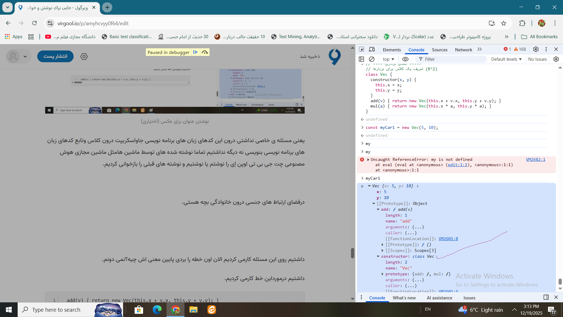 ببینیم هوش مصنوعی چت جی بی تی اوپن اِی درمورد این خط کدزبان برنامه نویسی جاوااسکریپت بخش کلاس اش بخش تابع اش که جزو کلاس است یاهست هنوزمعلوم نیست چی می گوید.