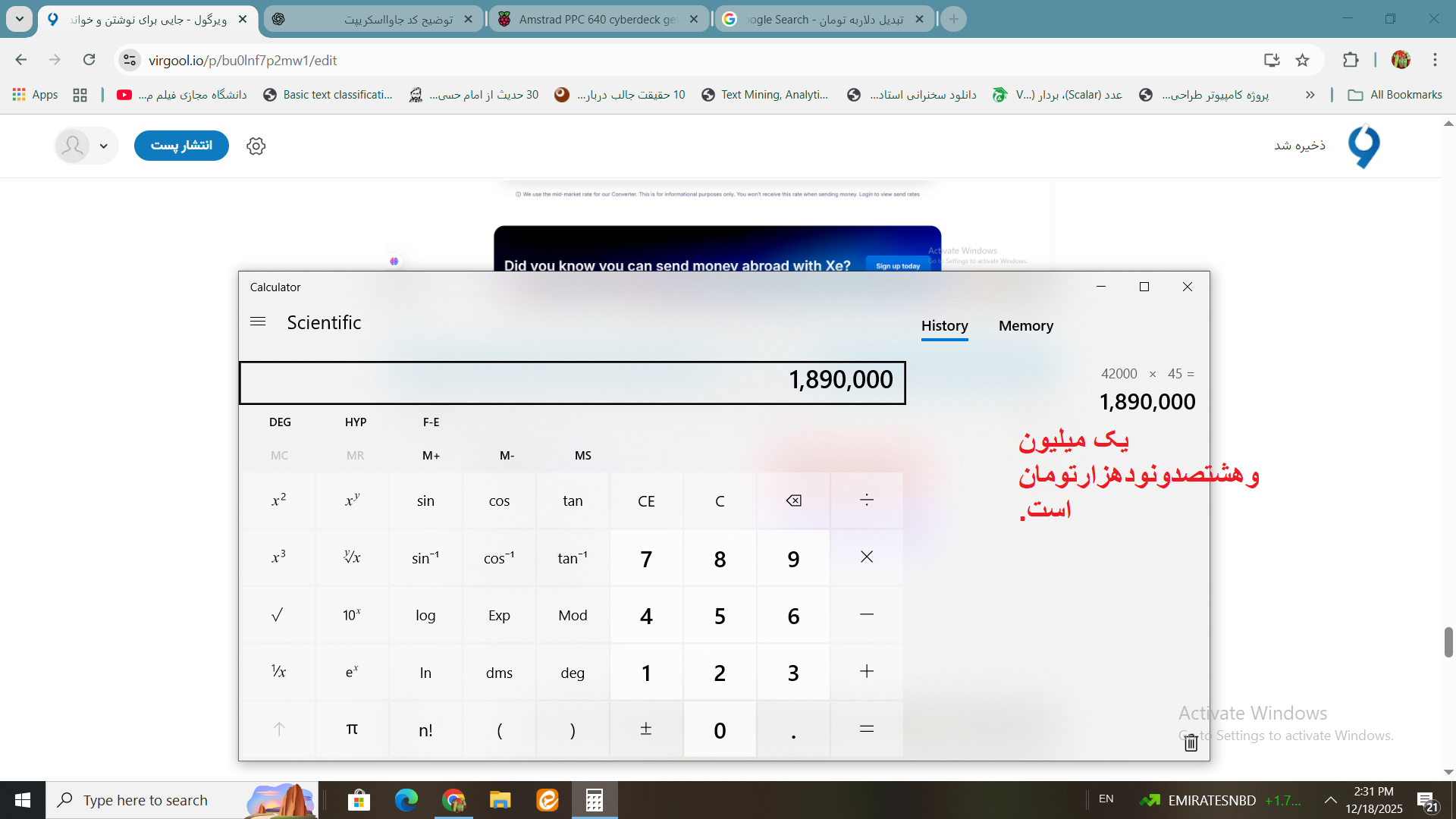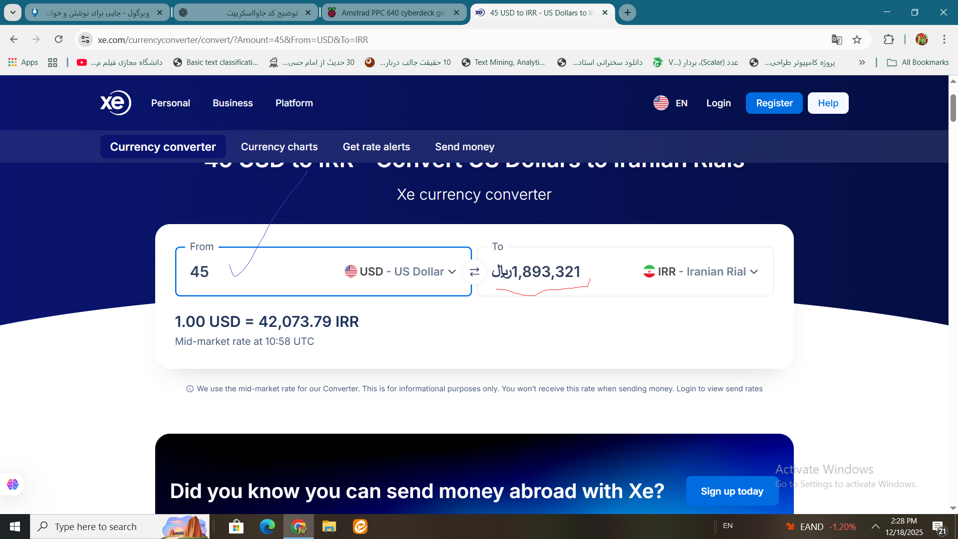 (بر اساس نرخ تقریبی حدود ﷼42,100 برای هر ۱ دلار) که حدود ۱,۸۹۵,۵۱۲ ریال میشود. Converter X+1⚠️ توجه مهم درباره نرخ داخل ایران: