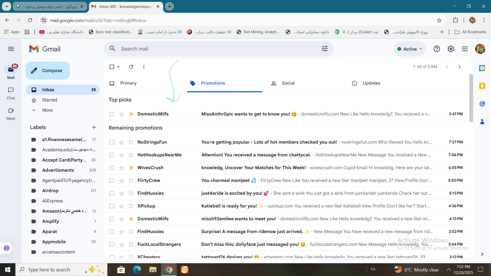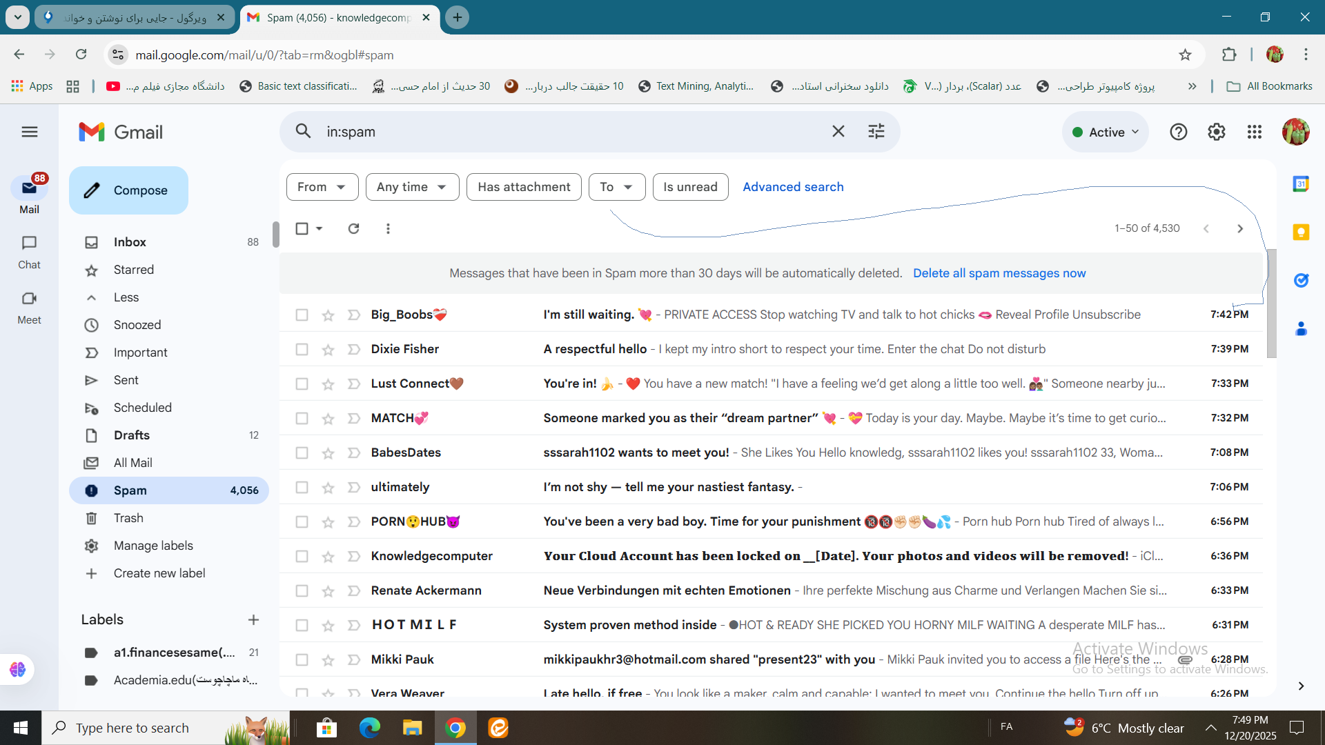 این ایمیل هایی که برای ات فرستاده می شود یا شده ات را نگاه کون یا کن