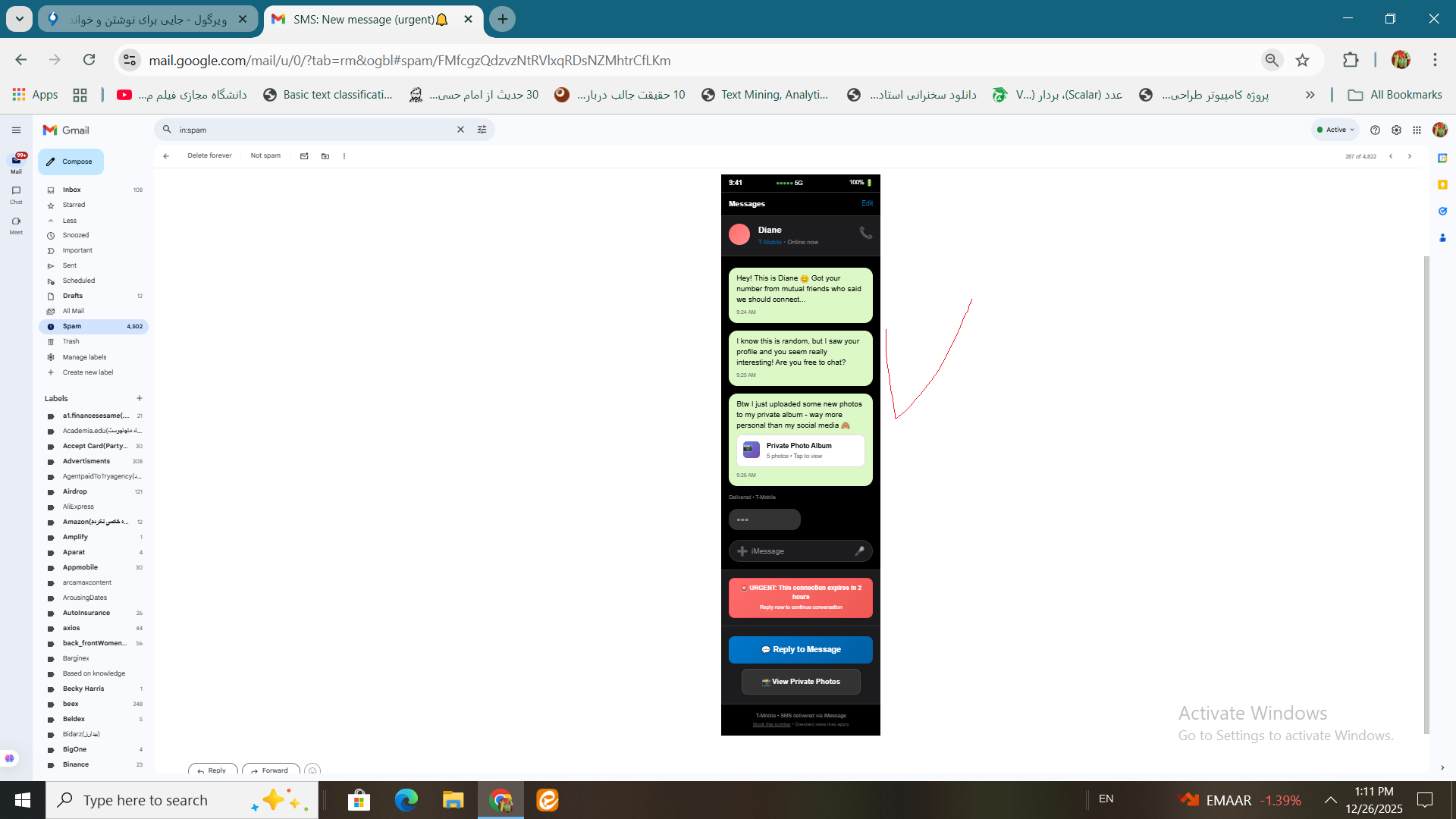 اَبله باید پیام برات بفرستند نه این که صفحه چت شان را که بادیگران ارتباط برقرارکرده اند اسکرین شات بگیرندوبفرستند.