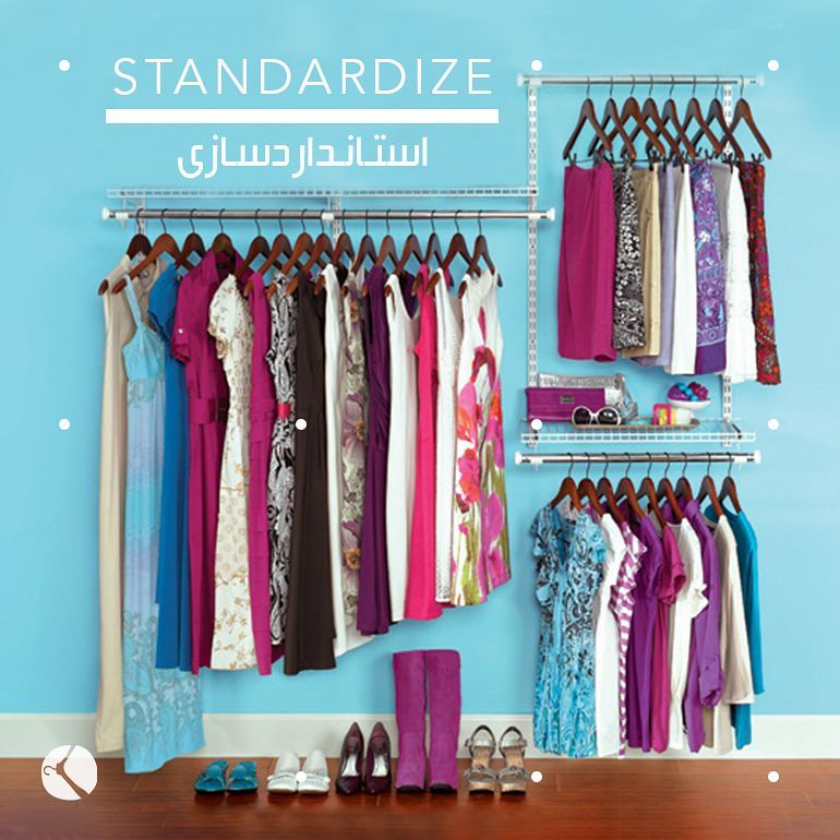 طبق استانداردهای خودت کمدت رو مرتب کن. مثلا اگه بیشتر مانتوی مشکی و شلوار جین استفاده میکنی٬ طبق همین الگو تو کمدت اونا رو کپی کن و بذار.