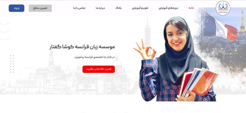 آموزشگاه زبان فرانسه کوشاگفتار، با افتتاح در سال ۱۴۰۰ در منطقه میرداماد تهران، با رویکردی نوین و حرفهای در زمینه آموزش زبان فرانسه فعالیت میکند. این آموزشگاه با بهرهگیری از اساتید مجرب و کارآزموده و روش آموزشی منحصربهفرد خود، موفق به کسب رضایت زبانآموزان در سطوح مختلف شده است.