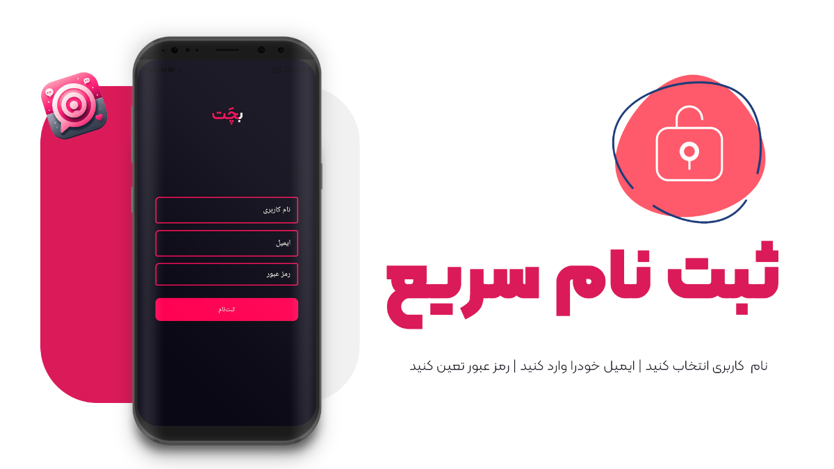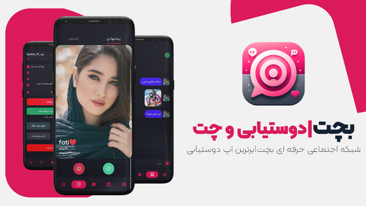 دیگه زمونه عوض شده یا شایدم نه نشده ! درکل اپلیکیشن بچت بهترین و جدید ترین اپلیکیشن دوستیابی در خدمت شماست. پس از ماه ها کارکردن روی یک اپلیکیشن حرفه ای و رفع مشکلات اکنون نسخه جدیدی از این برنامه دوستیابی ایرانی برای شما آماده کرده ایم تا مارکت ها قرار بگیرید"اپلیکیشن چت و دوستیابی بچت در سازمان رسانههای دیجیتال وزارت فرهنگ و ارشاد اسلامی با شماره 1-1-822662-63-0-2 ثبت شده است و این برنامه یک محیط امن میباشد که خیالتون راحت باشه اطلاعات شما محفوظ میباشد.