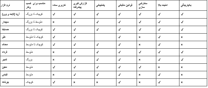 • تطابق نرم افزار با قوانین مالیاتی و نیازهای داخلی