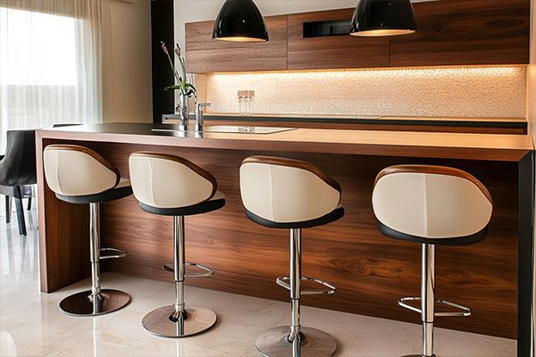 • استفاده زیاد: اگر صندلی اپن شما به طور مداوم و زیاد مورد استفاده قرار میگیرد، بهتر است از روکشهای مقاوم و بادوام مانند چرم یا میکروفیبر استفاده کنید. این روکشها در برابر سایش، پارگی و لکه مقاومت بالایی دارند و به راحتی تمیز میشوند.