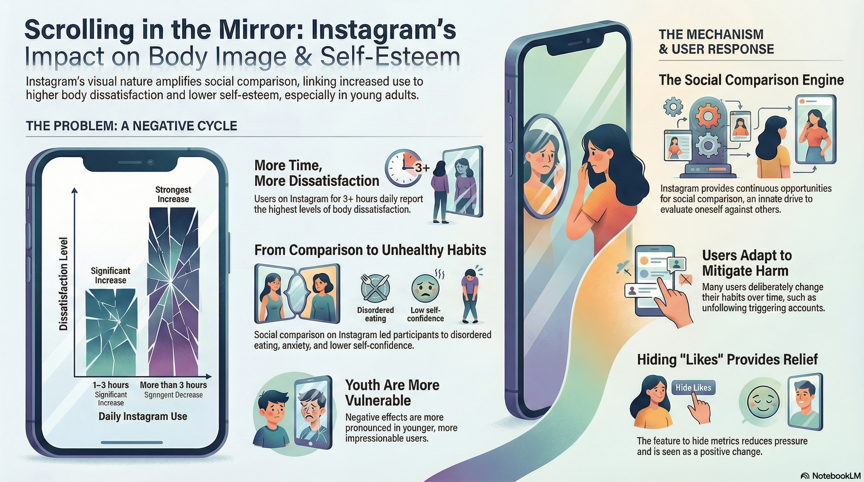 شواهد این مطالعات روشن است: اینستاگرام شمشیری دو لبه است. در حالی که امکان ارتباط و اجتماع را فراهم میکند، ماهیت شدیداً بصری آن بستری مناسب برای سیر تصاعدی مقایسه اجتماعی میسازد که میتواند عزتنفس و رضایت از بدن را مخدوش کند. مطالعه اسپانیایی نشان میدهد مدت استفاده عامل خطر اصلی است، در حالی که پژوهش آمریکایی تأکید میکند برداشت کاربر و میزان بلوغ میتواند تا حدی نقش سپر محافظ را ایفا کند.