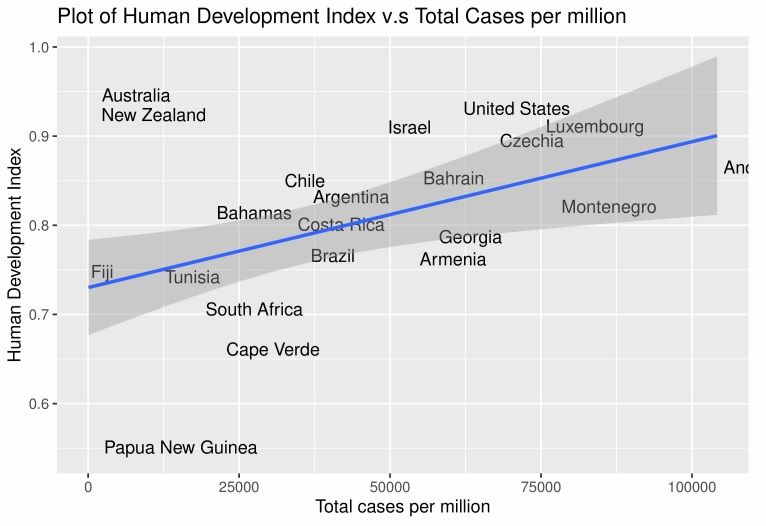 آخرین نمودار هم ارتباط بین شاخص توسعهٔ انسانی (( Human Development Index (HDI))) را با موارد ابتلا در میلیون نفر نمایش می دهد: