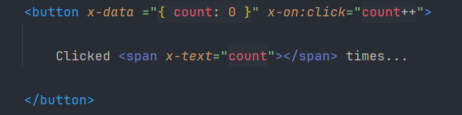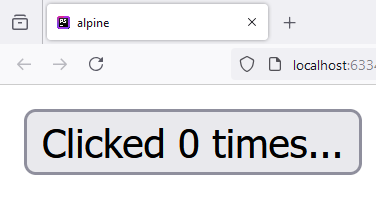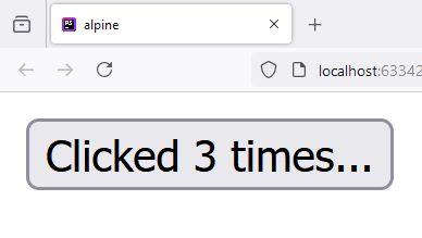 اینجا من اول با x-data یه متغیر درست کردم و بهش مقدار اولیه دادم، و با x-text مقدارش رو نشون میدم. قسمت اصلی از x-on شروع میشه که من با استفاده از اون، ایونت click شدن رو کنترل میکنم و بهش گفتم که با هر بار اتفاق افتادنش، مقدار متغیر رو زیاد کن. اینم قبل و بعد از سه بار کلیک کردن: