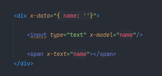 توی عکس بالا من اول یه متغیر خالی تعریف کردم و بعدش یه input گذاشتم که کاربر بتونه اسمش رو وارد کنه، و با x-model، باکس رو به متغیرمون متصل کردم. تهش هم یه x-text گذاشتم که نتیجه رو ببینیم. حالا اگه کاربر چیزی داخل باکس وارد کنه، آلپاین در لحظه متغیر رو آپدیت میکنه و مقدار جدید رو جایگزین میکنه!