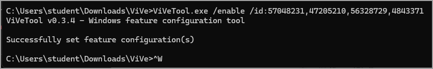 ViVeTool.exe /enable /id:57048231,47205210,56328729,4843371