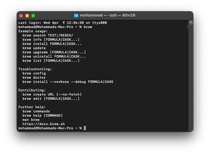 برنامهی مدیریت بستهی HomeBrew یکی از مواردی است که برای توسعهدهندگانی که با سیستمعامل macOS کار میکنند میتواند بسیار مفید و کاربردی باشد. این مدیریت بسته روش نصبی بسیار آسان و سر راست دارد و عموماً بعد از نصب آن میتوانید با دستور Brew به سادگی از آن استفاده کنید.