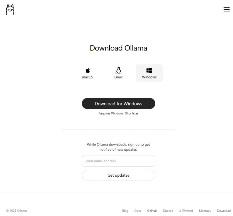 در این بخش ویندوز را انتخاب و Ollama را دانلود کنید.