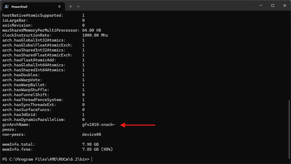 برای من در بخش gcnArchName نوشته شده -gfx1010:xnack که یعنی GPU کارت گرافیک کامپیوتر من میتواند از -xnack استفاده کند. ممکن است که برای برخی مدلها +xnack نوشته شده باشد که این یکی دیگر از Modeهای این قابلیت است.