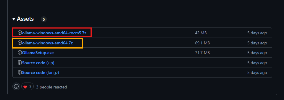 حال کافیست که وارد این لینک شوید و بسته به نسخهی ROCm مورد استفاده، یکی از دو نسخهی Ollama را دانلود کنید.