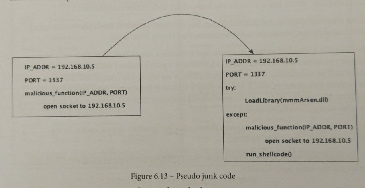 برای اینکه نرم افزار آنتی ویروس نتواند در منطق کد جستجو کند، می توانیم از کد ناخواسته استفاده کنیم که به ما کمک می کند منطق کد را پیچیده تر کنیم.