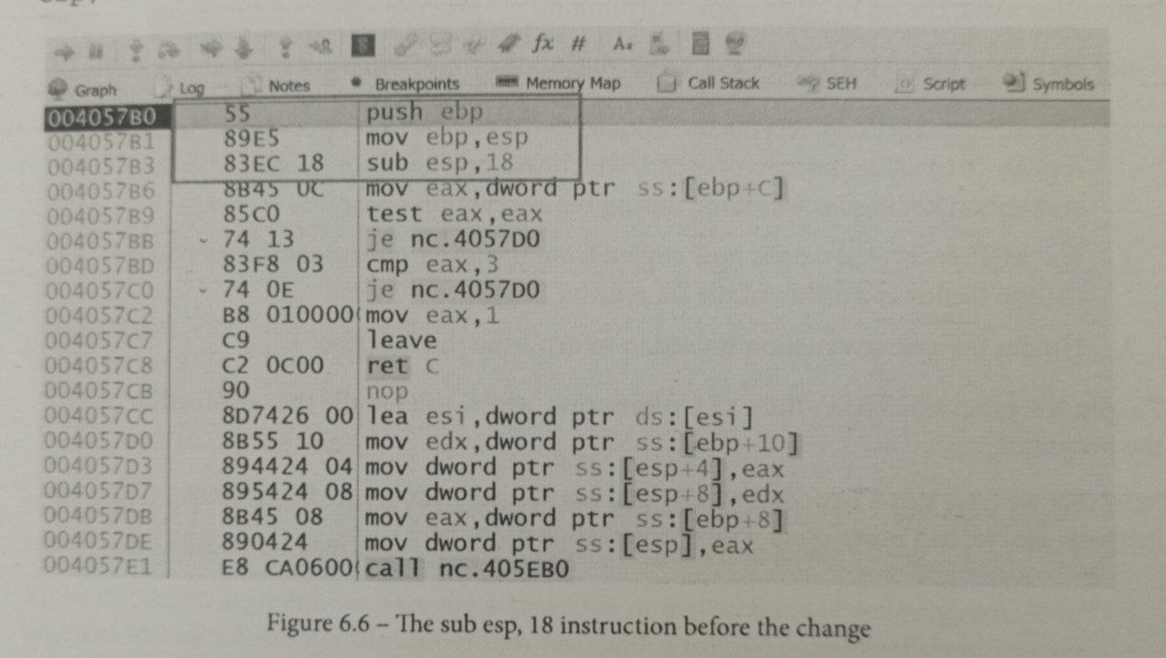 در مثال زیر، ما از netcat.exe استفاده کردیم که قبلاً توسط اکثر موتورهای آنتی ویروس به عنوان یک فایل مخرب امضا شده و شناسایی شده است. وقتی فایل کامپایل شده را با x32dbg باز کردیم و به نقطه ورودی فایل رسیدیم، اولین چیزی که دیدیم این بود که اولین تابع از دستور sub esp، 18 استفاده میکند - از رجیستر ESP کم میکند (همانطور که قبلا توضیح داده شد).