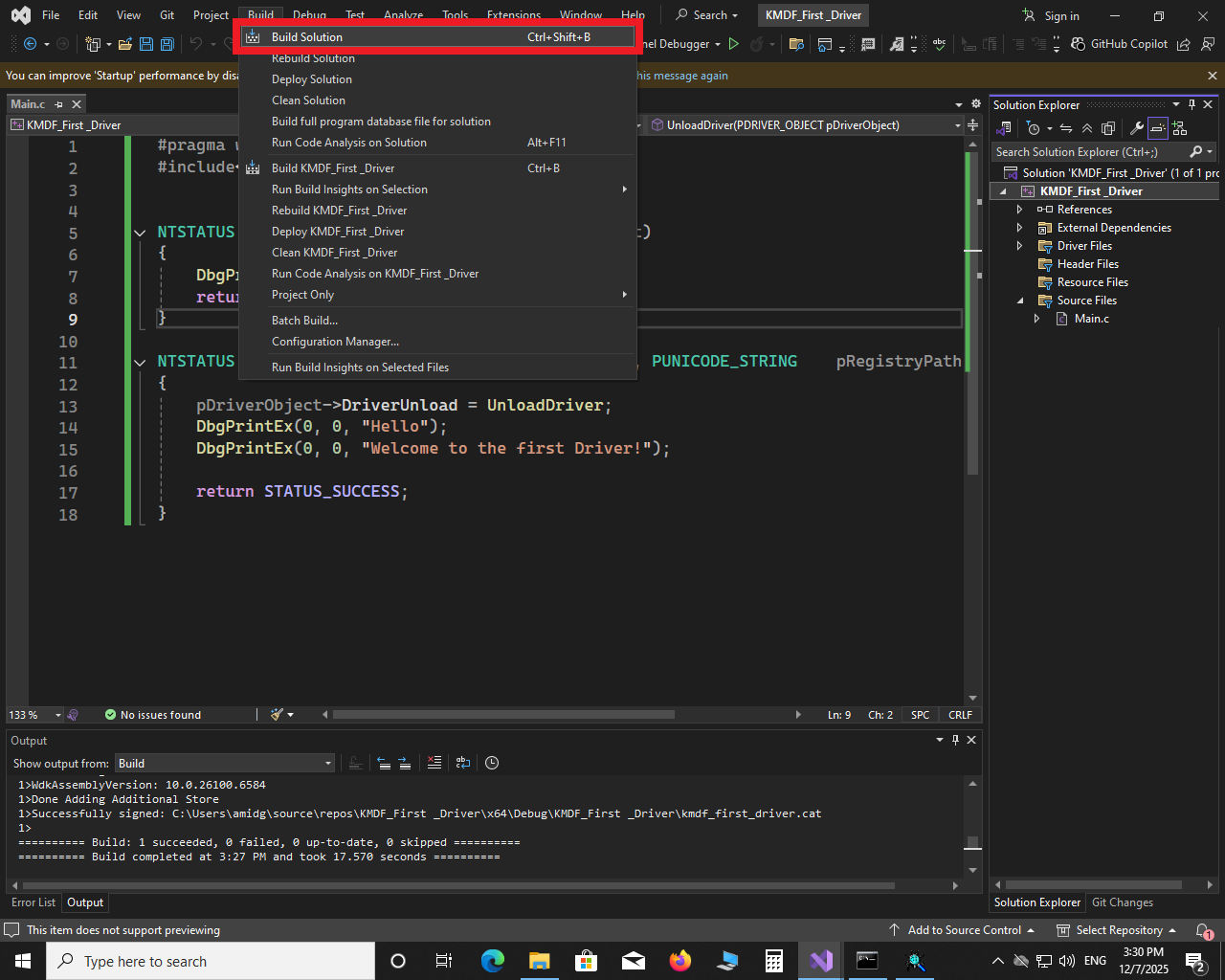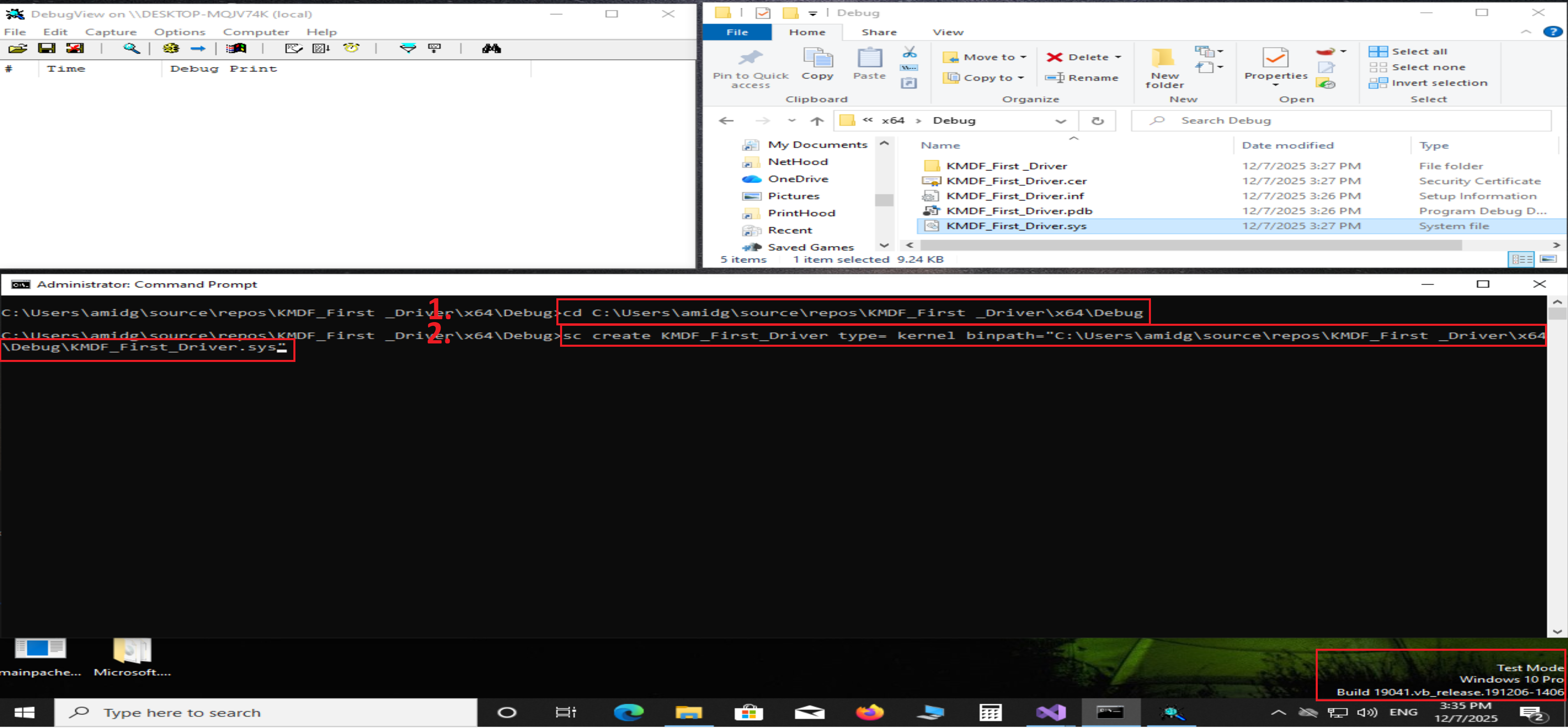 پیکربندی مهمترین مرحله برای این است که درایور بتواند بهدرستی بارگذاری (Load) شود. معمولاً پیشنهاد میشود که تست درایور را روی یک کامپیوتر جدا از سیستم توسعه انجام دهید.