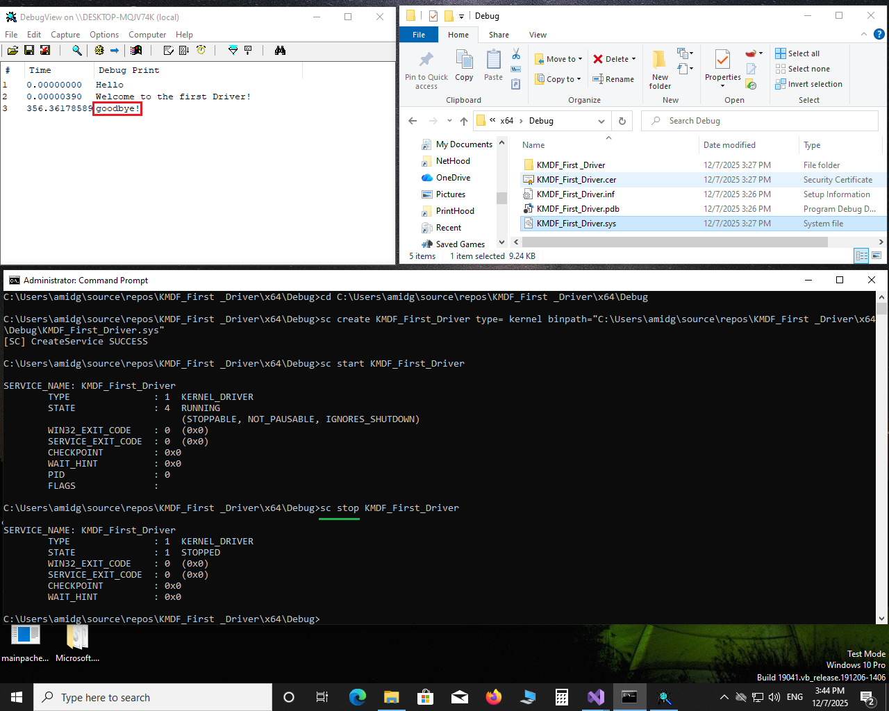 مراحل زیر را انجام بدین تا یک درایور سطح کرنل نوشته و با دستور نشان داده شده درایور رو در کرنل نصب و راه اندازی و متوقف کنیم.