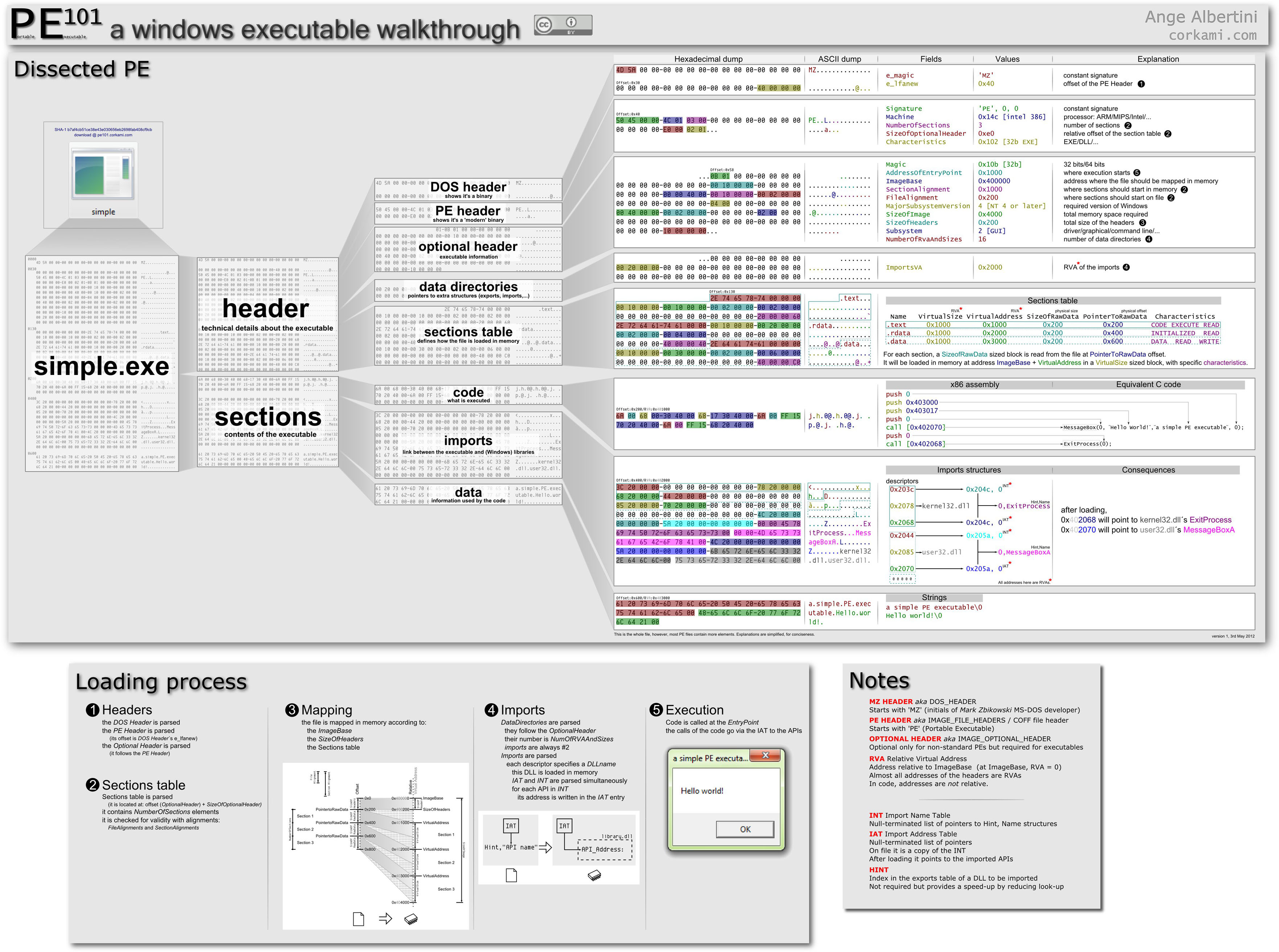 هر فایل اجرایی جدا از کدها و دادههای خود میتواند اطلاعات را از خارج از خود و از dll بگیرد. در هر فایل pe بخشی از هدر فایل، شامل آدرس جدول آدرس وارد کردن (Import) میشود که اطلاعات موجود در آن، آدرس توابعی که از dll ها فراخوانی میشود را در خود نگه داری میکنند ( البته این آدرس ها با پایهٔ آدرس dll ترکیب میشوند که در تصویر دوم هم قابل مشاهده است). تصویر زیر خلاصهای ار هدر فایلهایی با ساختار PE میباشد. در این عکس import adress table حاوی آدرس iat در برنامه میباشد.