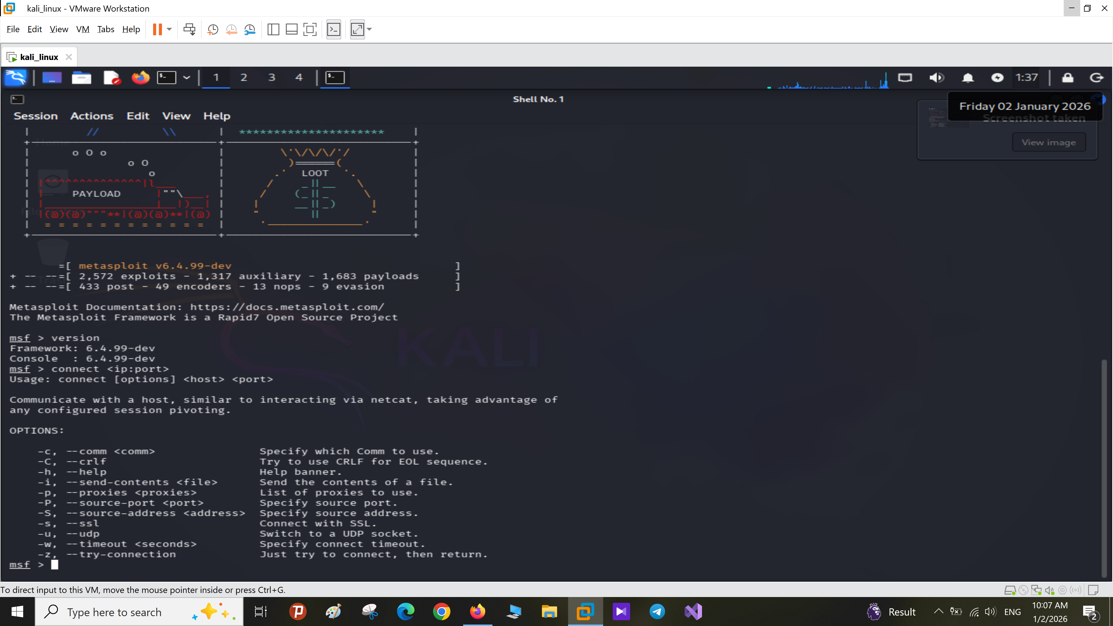 دستور connect در فریمورک Metasploit قابلیتی مشابه ابزارهای PuTTY یا Netcat ارائه میدهد. از این قابلیت میتوان برای انجام یک اسکن سریع پورت یا دریافت بنر پورت (Port Banner Grabbing) استفاده کرد.