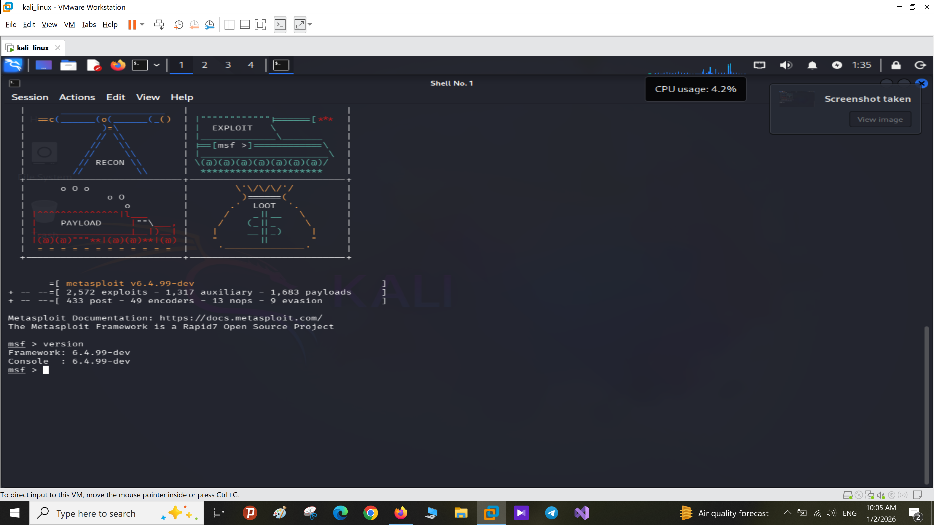 دستور version برای بررسی نسخه نصبشده فعلی فریمورک Metasploit استفاده میشود.
