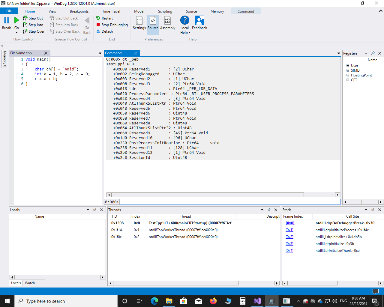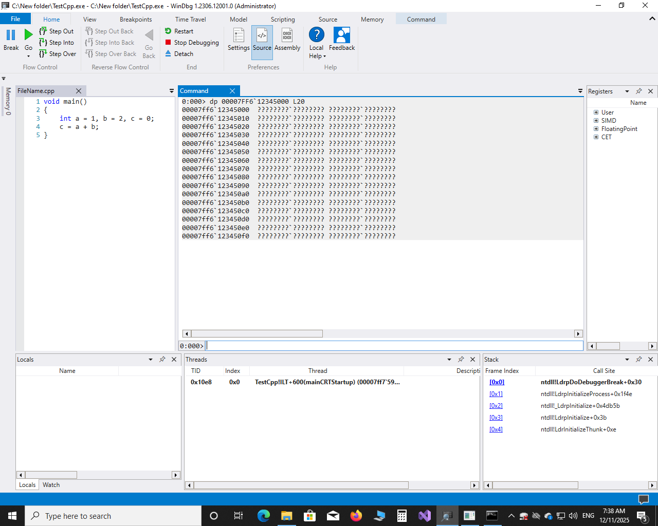 دستورات رایج در WinDbg Preview :
