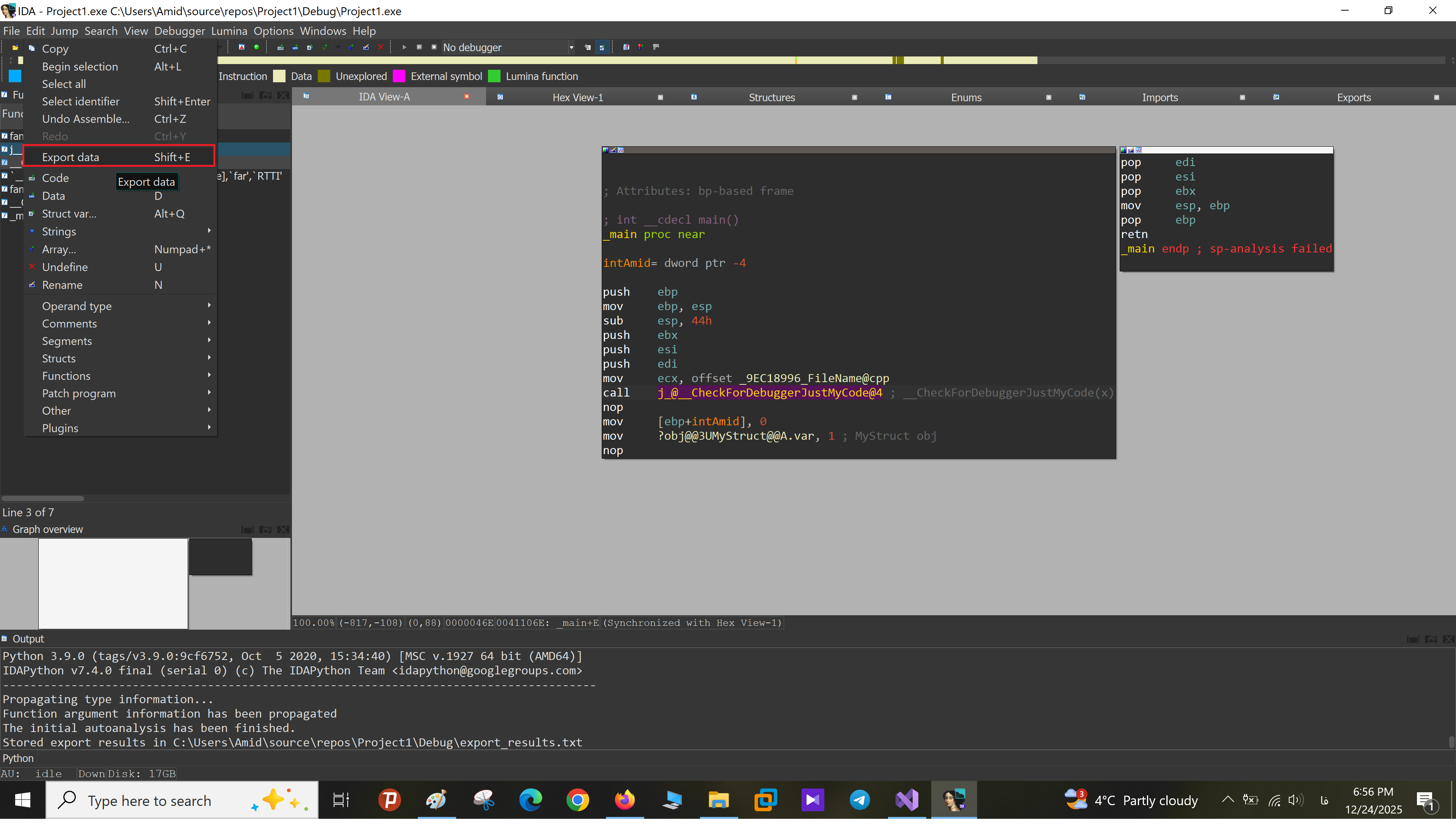 Export data در IDA: