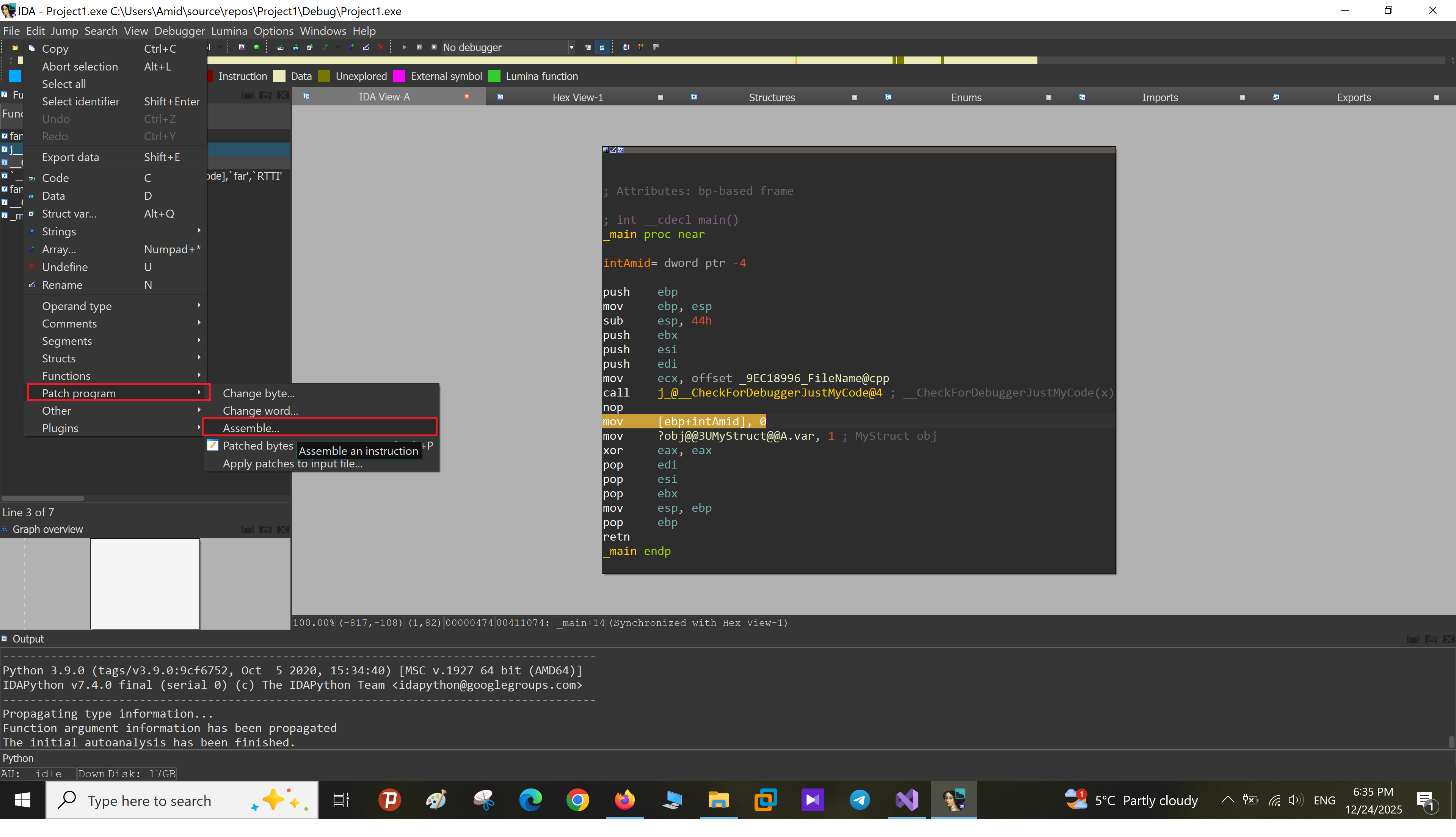 Edit → Patch program → Assemble