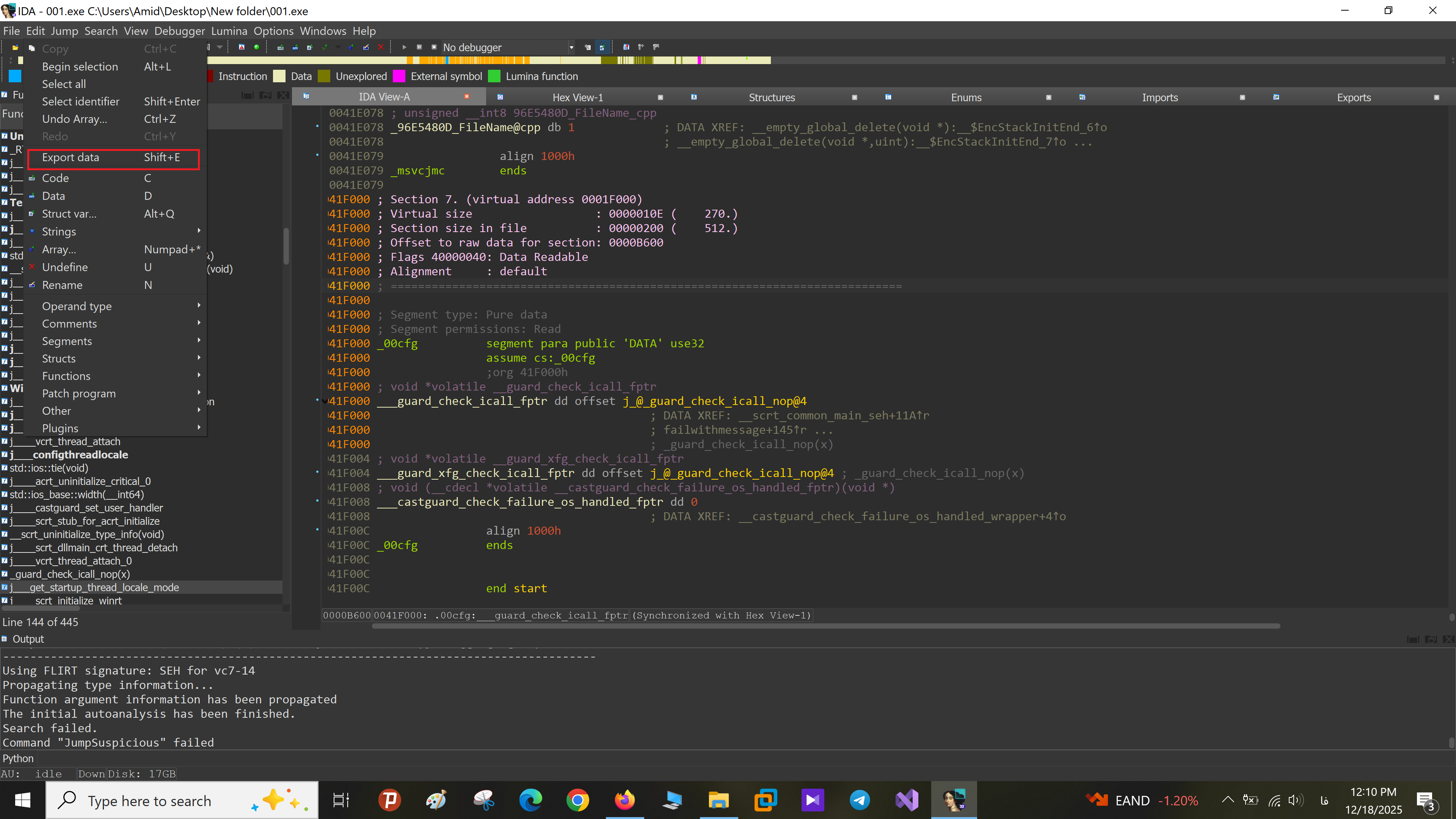 Export data در IDA