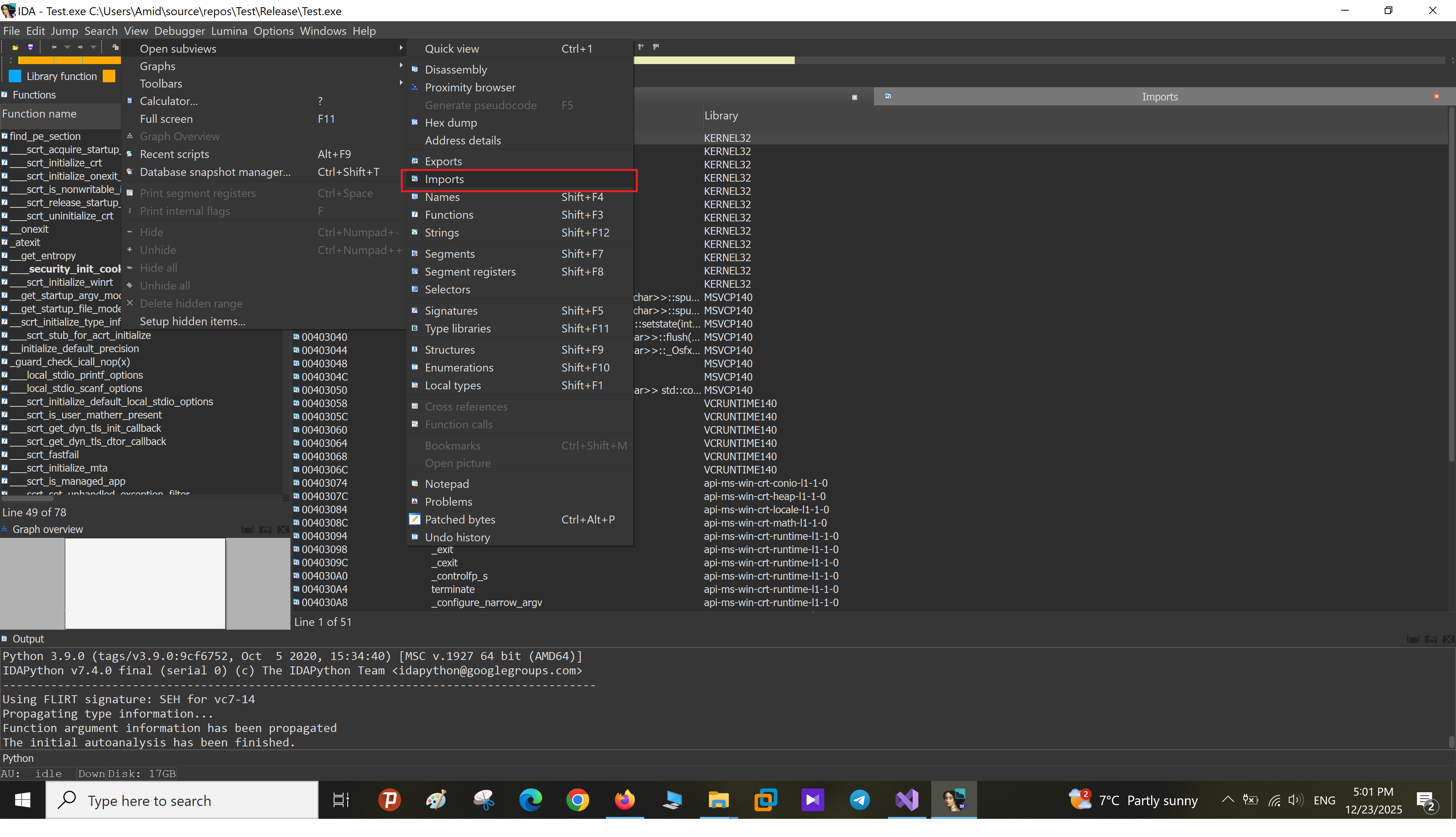 Imports در IDA