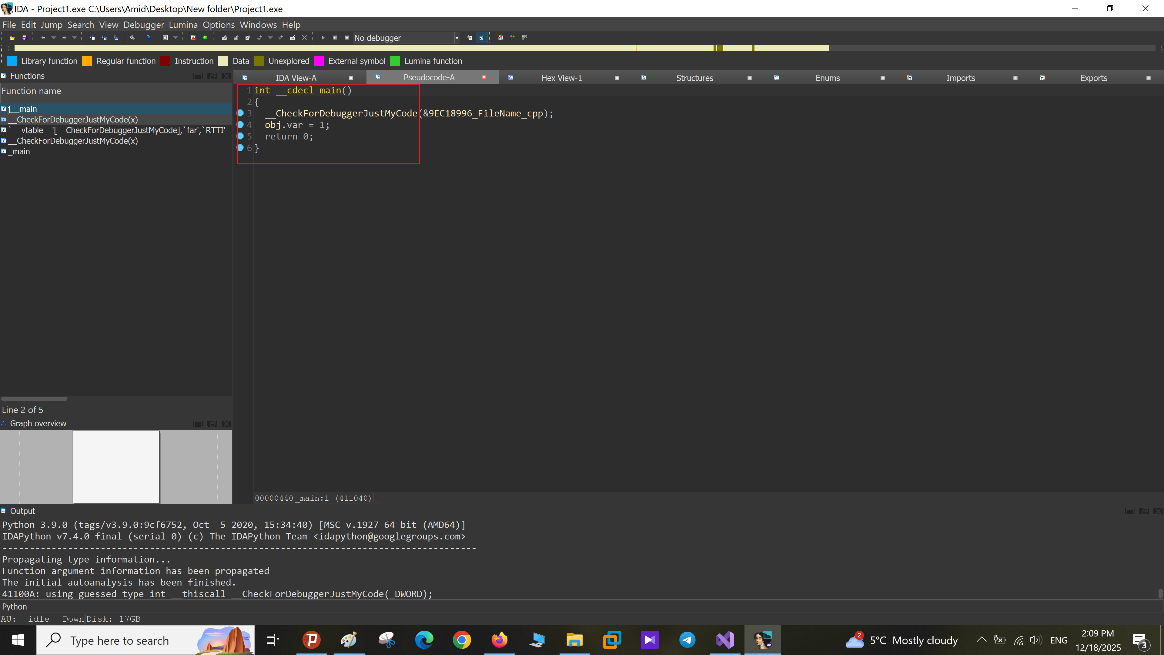 با باز کردن Proximity browser، یک گراف از تابع فعلی و توابع/متغیرهای مرتبط (Callerها، Calleeها، متغیرهای سراسری و…) نمایش داده میشود تا روابط بین بخشهای مختلف برنامه را بهتر ببینید.
