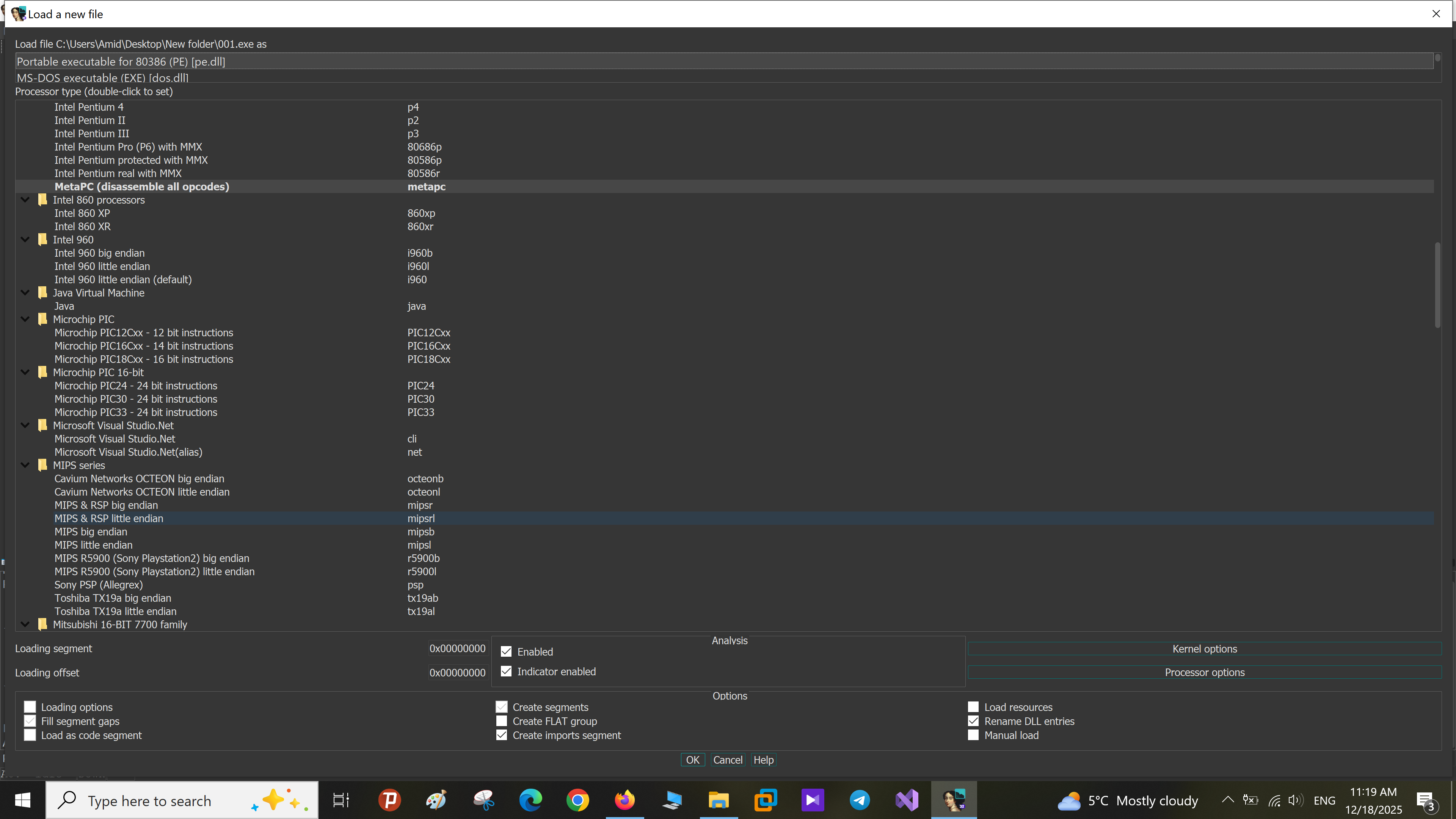 لیست تمام پردازه هایی که IDA پشتیبانی میکند در زیر لیست شده هستن.