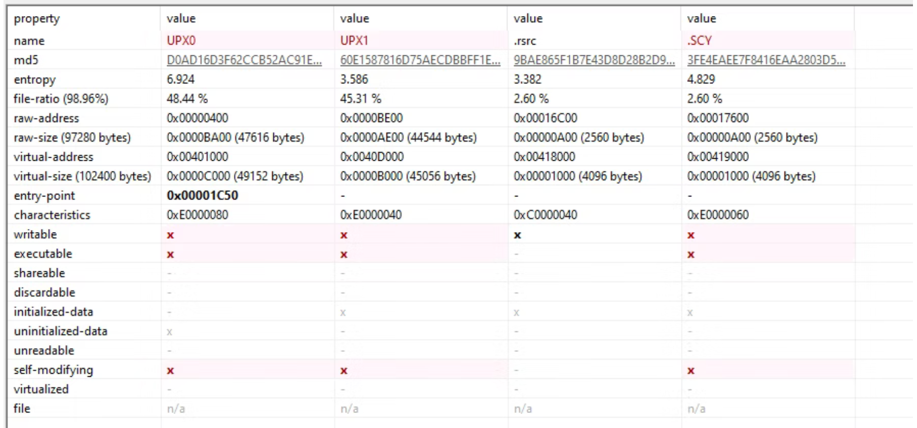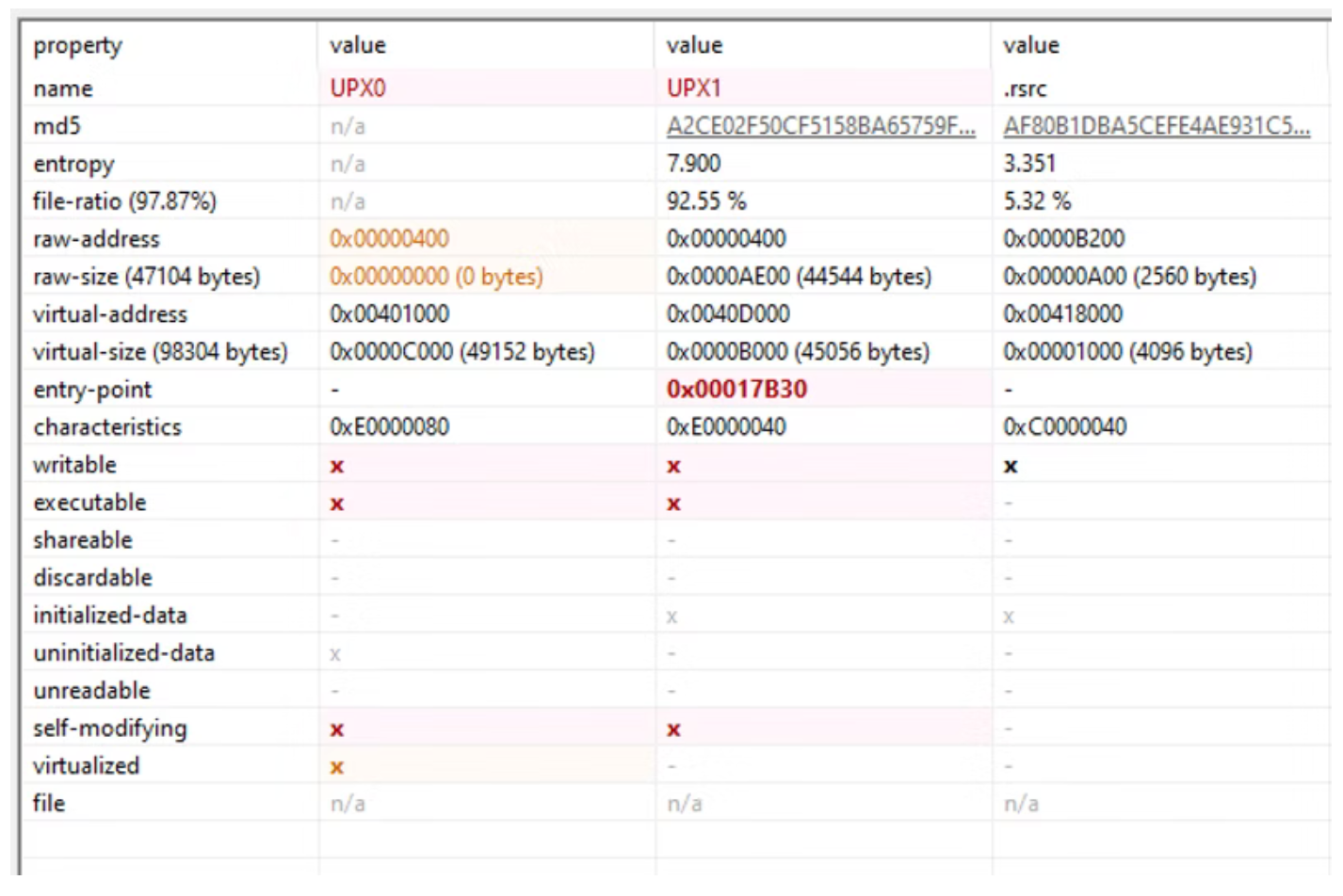 علاوه بر این، امضای UPX نیز دیگر وجود ندارد.